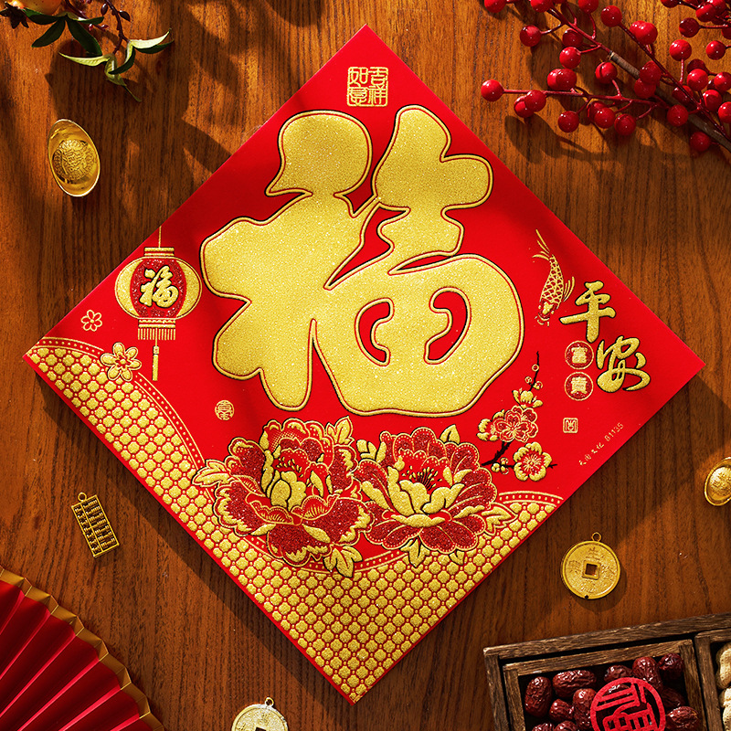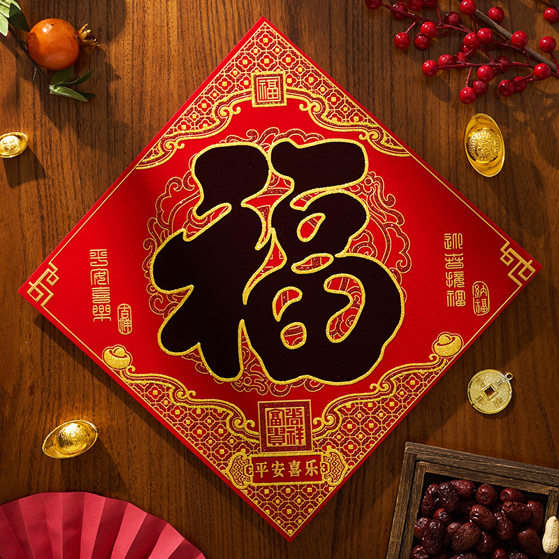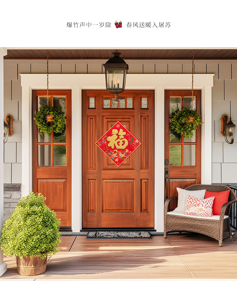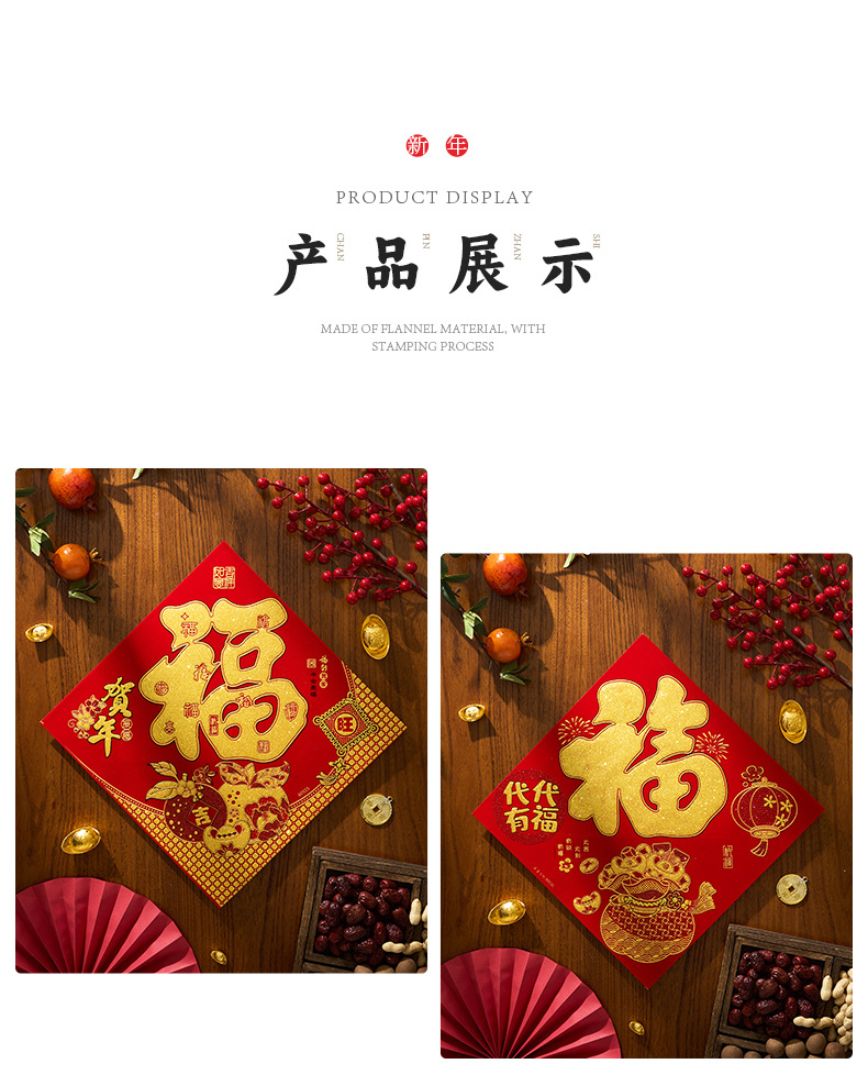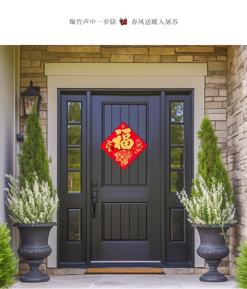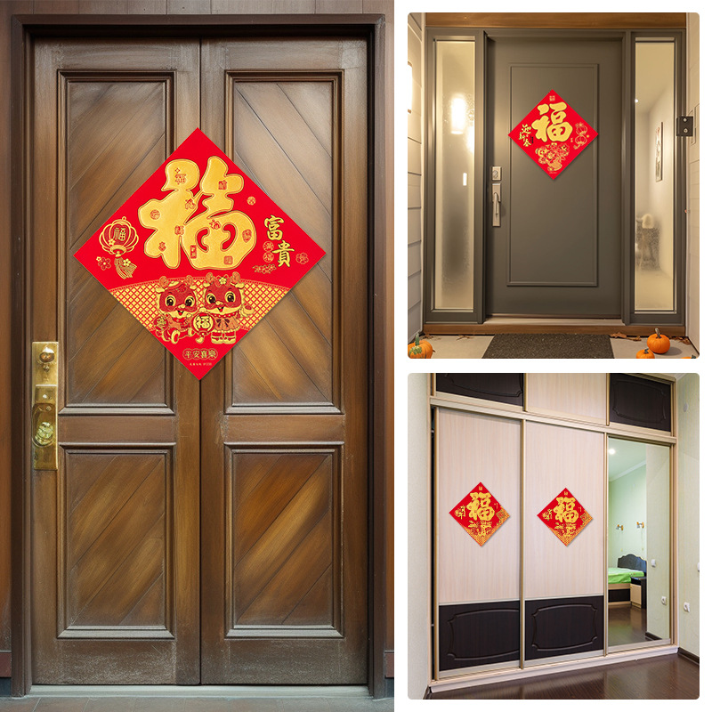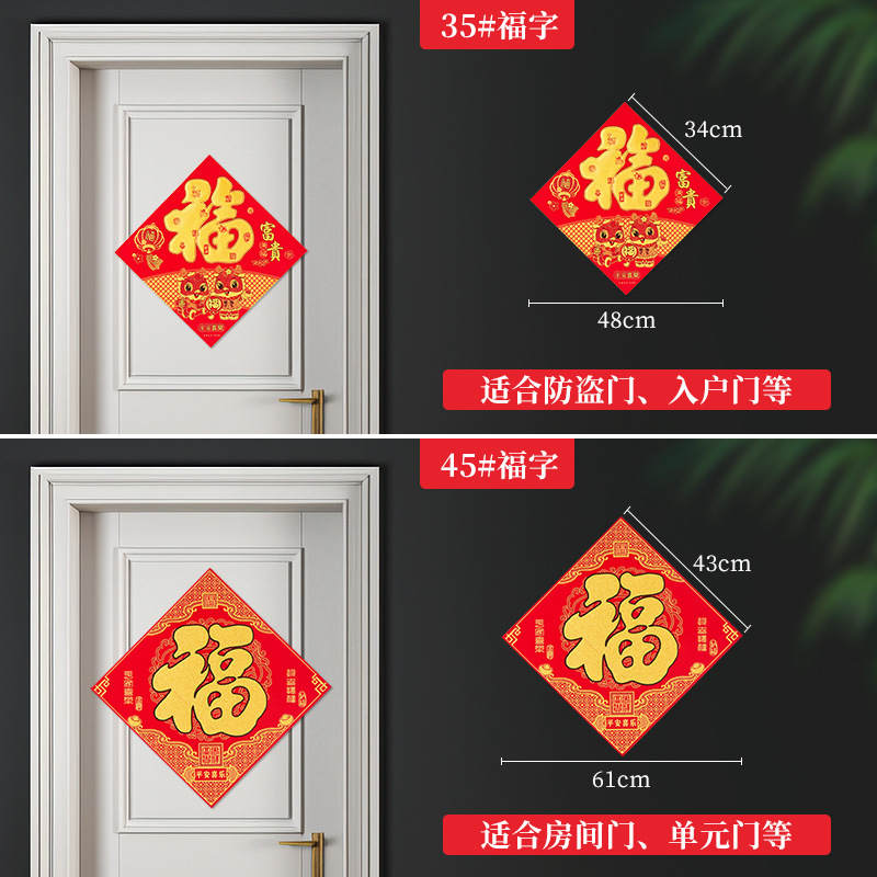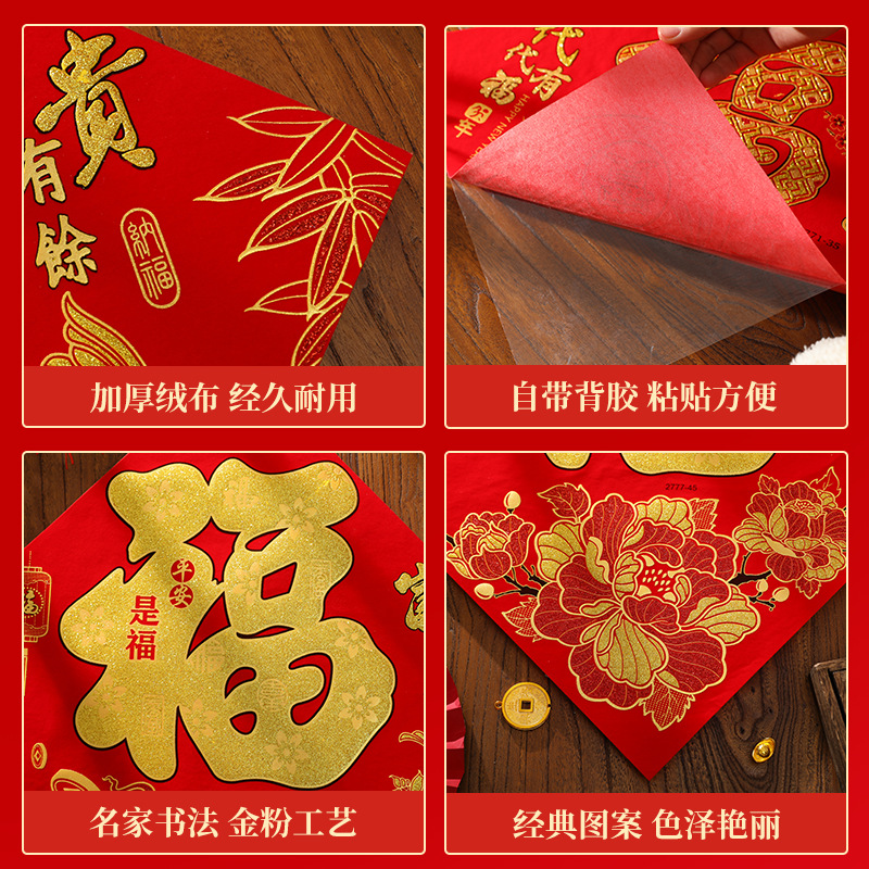 2024新款福字门贴新年装饰立体绒布墙贴龙年春节过年大门贴纸年画