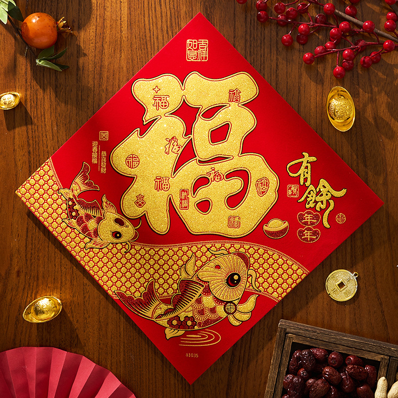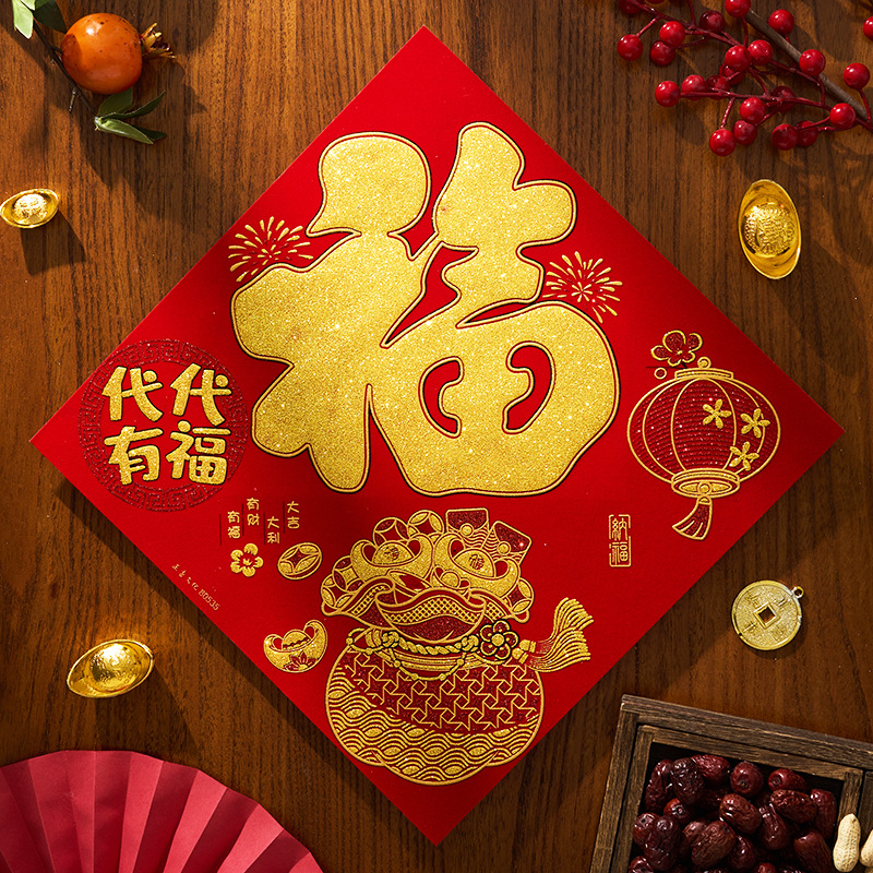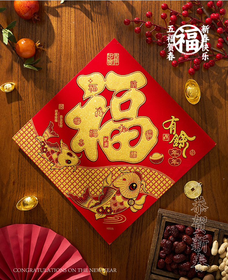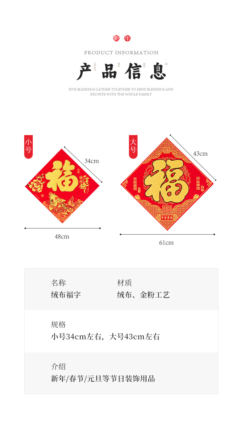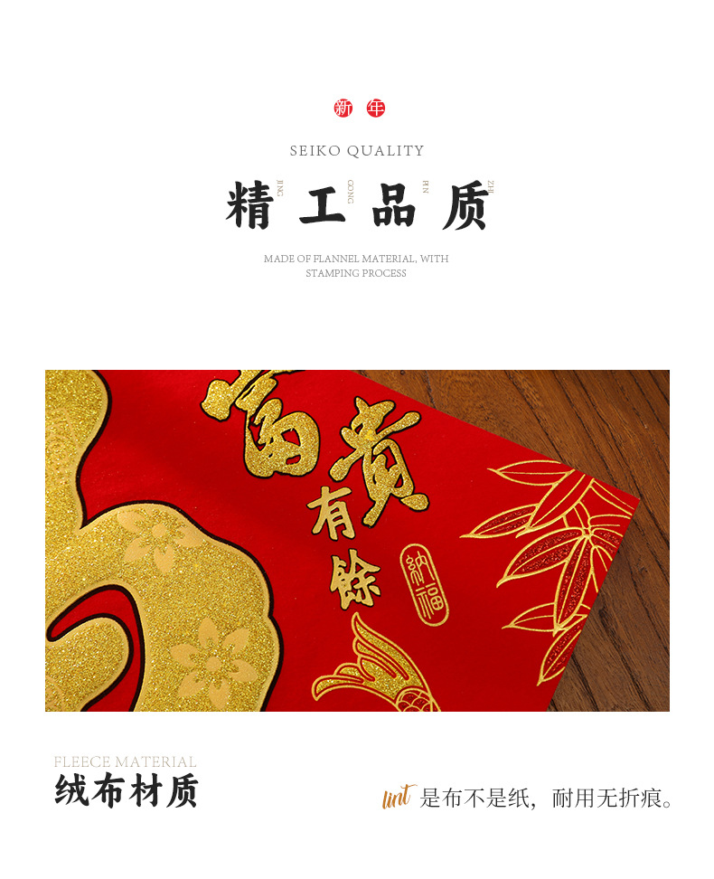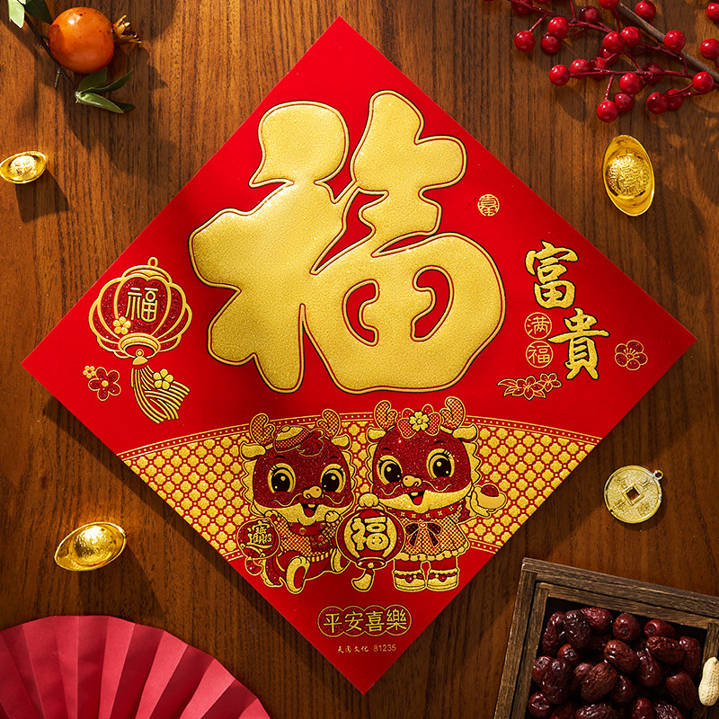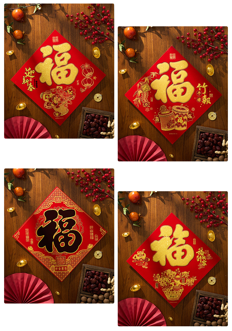 2024新款福字门贴新年装饰立体绒布墙贴龙年春节过年大门贴纸年画