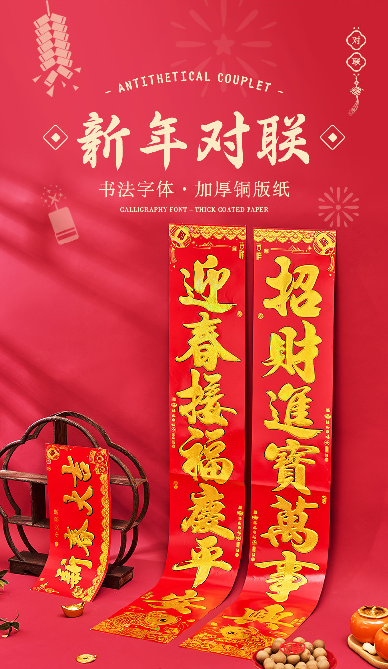 2026马年新款对联铜版纸烫金新年过年大门装饰门贴春联新春年画