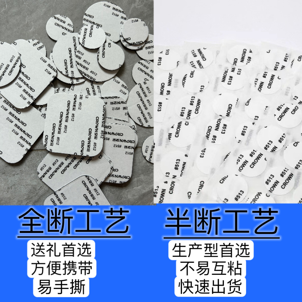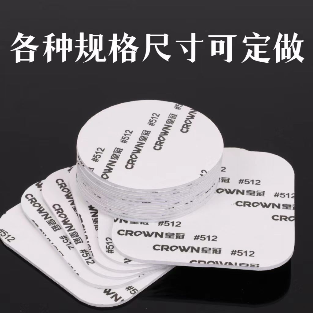 皇冠泡棉胶贴:该产品是由皇冠双面胶+泡棉,经过模切机模切而成(任意形状)。双面胶型号有多种可以选,胶贴厚度也可以通过泡棉的不同厚度来实现你需要任意厚度。双面胶贴的性质也可以按客户需求来制作,如耐高温,强力粘合,持粘性,无痕,可移水洗等(我们可按您需求来为你推荐) 本公司自己设有研发部,可根据客户来样来图进行工,能完成设计、分切、贴合、模切等工作流程。建立健全的客户服务和生产质量管理体 系.为广大客户提供价廉质优的产品. 欢迎你的订购
