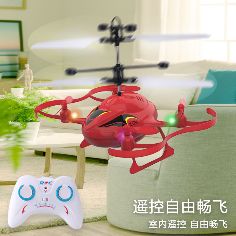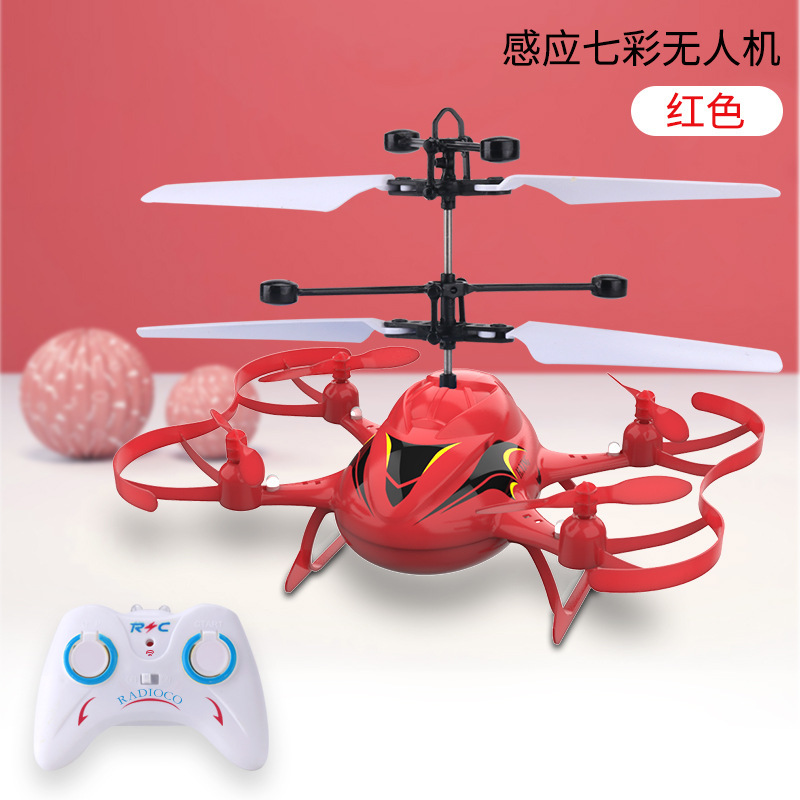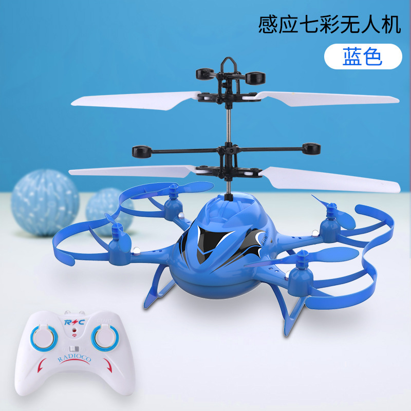 工厂货源跨境遥控手势感应双模悬浮飞机七彩灯光夜市地摊儿童玩具