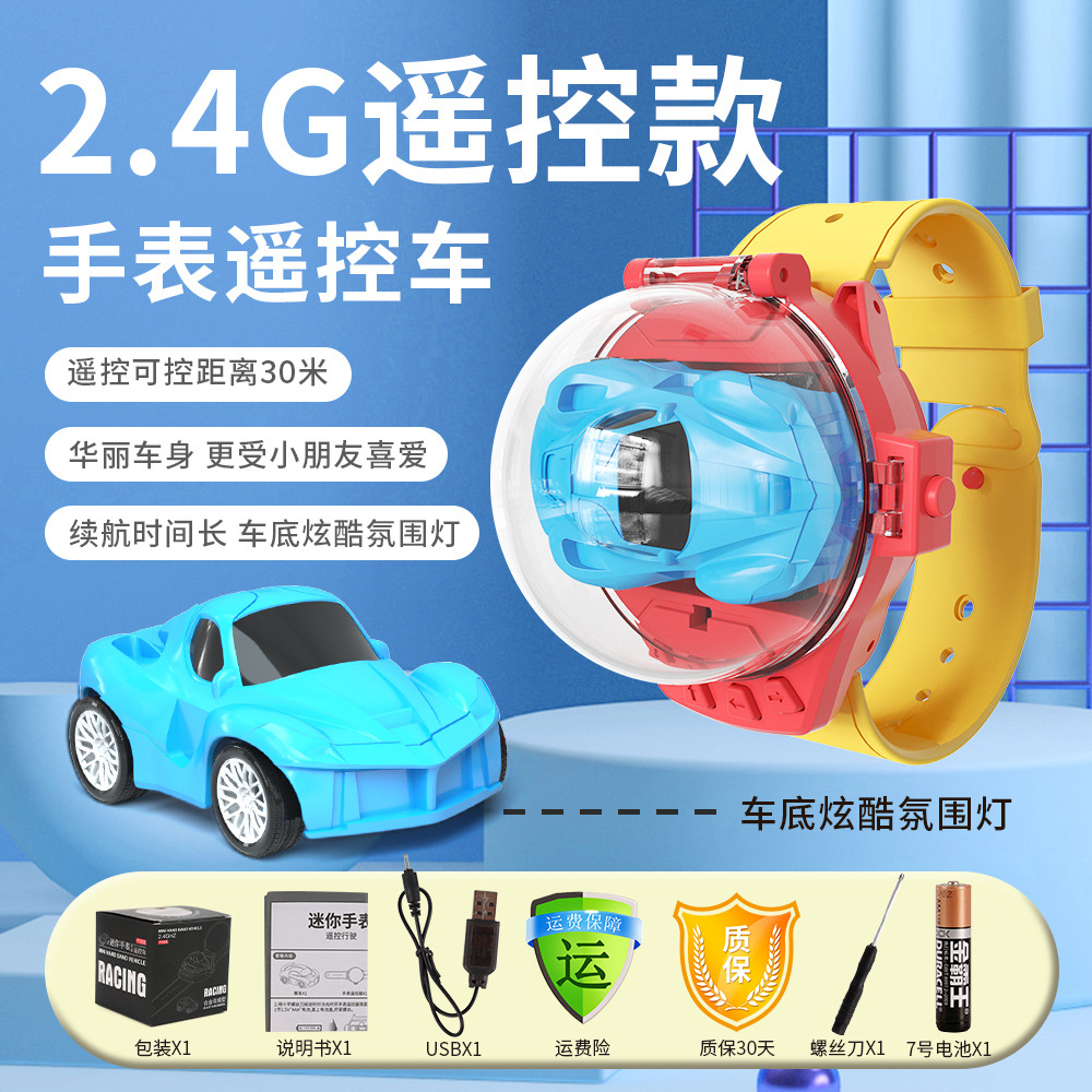 跨境专供爆款儿童玩具迷你电动赛车手表红外线2.4G遥控车厂家批发