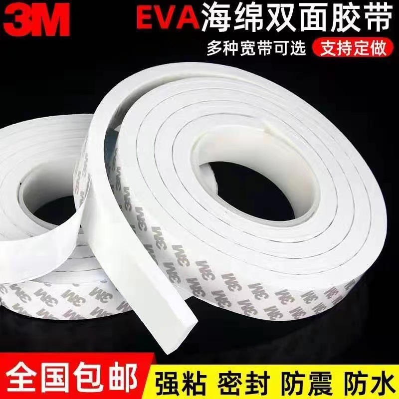 强粘3M泡棉双面胶 黑白色防水耐高温加厚EVA海绵泡沫防撞密封胶条