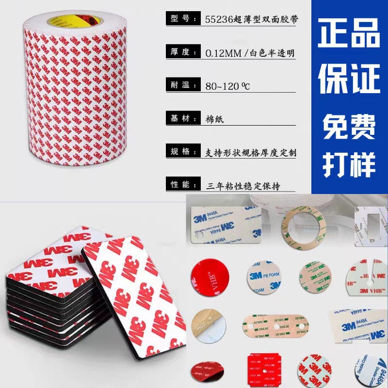 正品红色字 3M55236双面胶超薄强粘透明铭牌泡棉海绵棉纸双面胶带