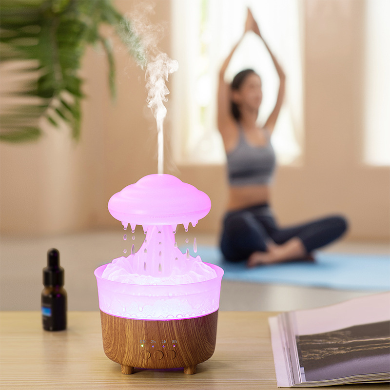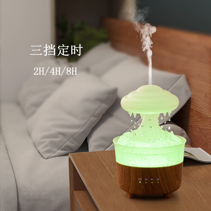 创意雨滴加湿器家用七彩氛围灯香氛机超声波静音木纹水滴香薰机