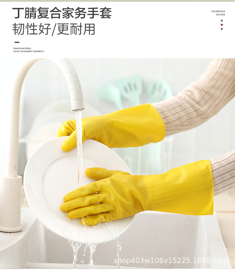 加厚黄色橡胶牛筋乳胶手套清洁家务手套耐用防水防滑胶皮塑胶洗碗