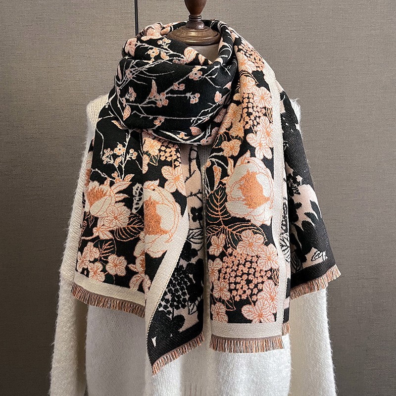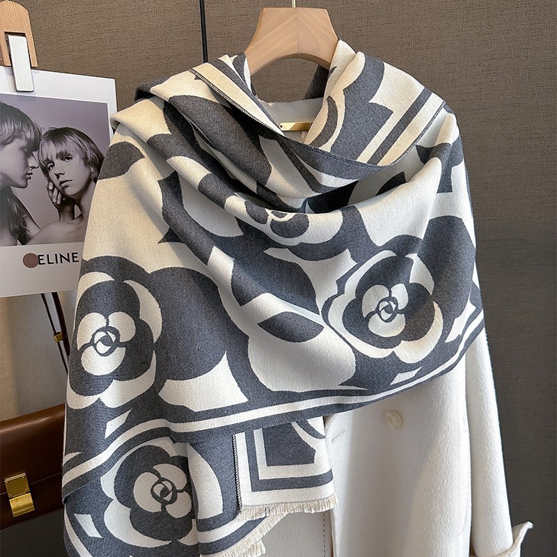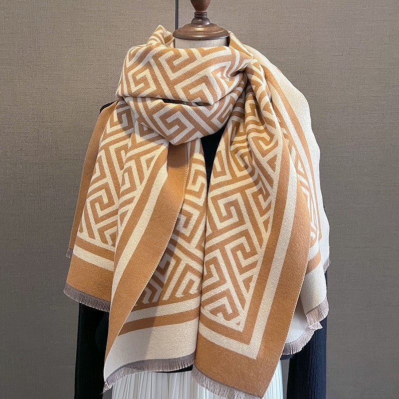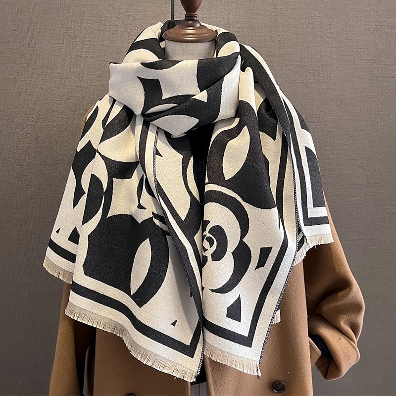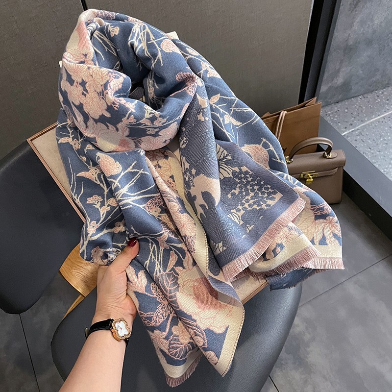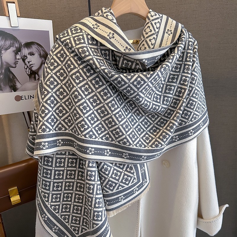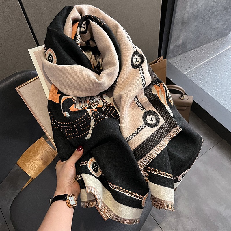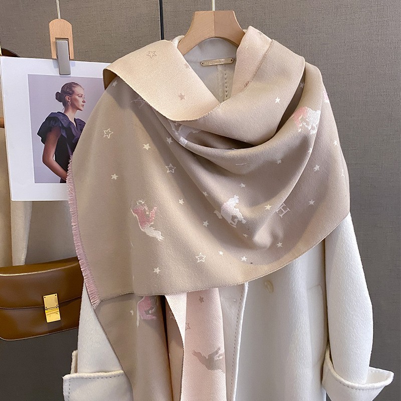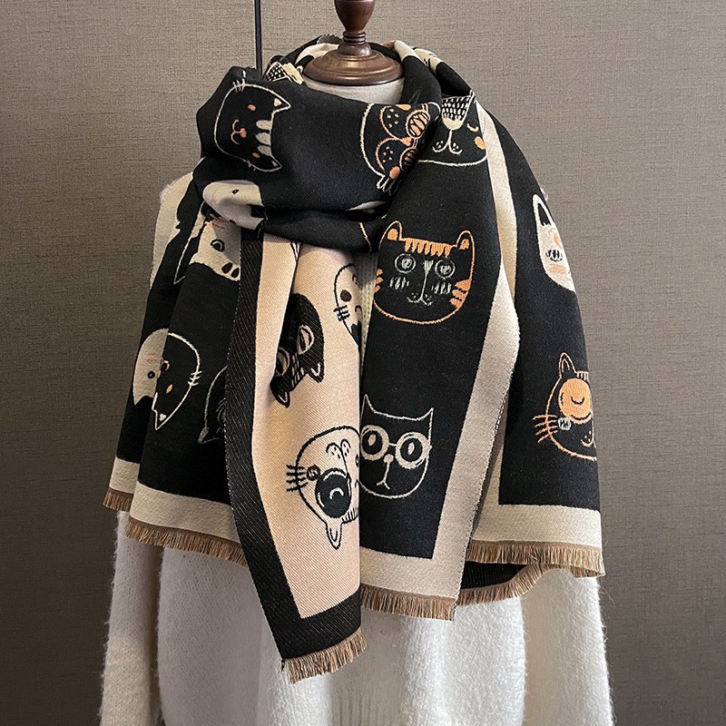韩国秋冬新款猫咪时尚仿羊绒围巾女韩版印花气质保暖围脖空调披肩