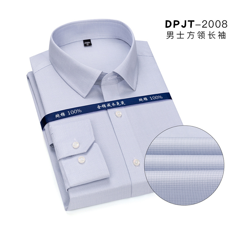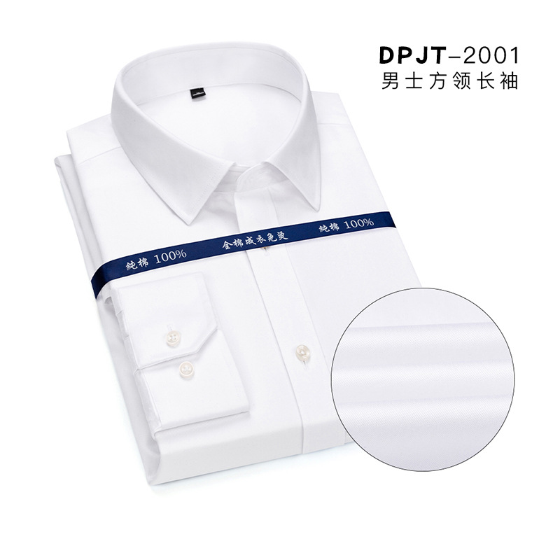 高档纯棉DP成衣免烫衬衫男士长袖纯色抗皱白衬衣职业上班商务男装