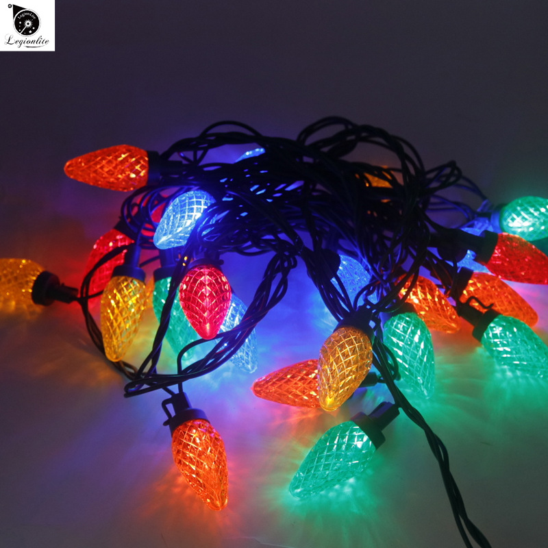 外贸专供UL120V25灯C9草莓LED直线灯串 室外防水彩灯美规圣诞灯串