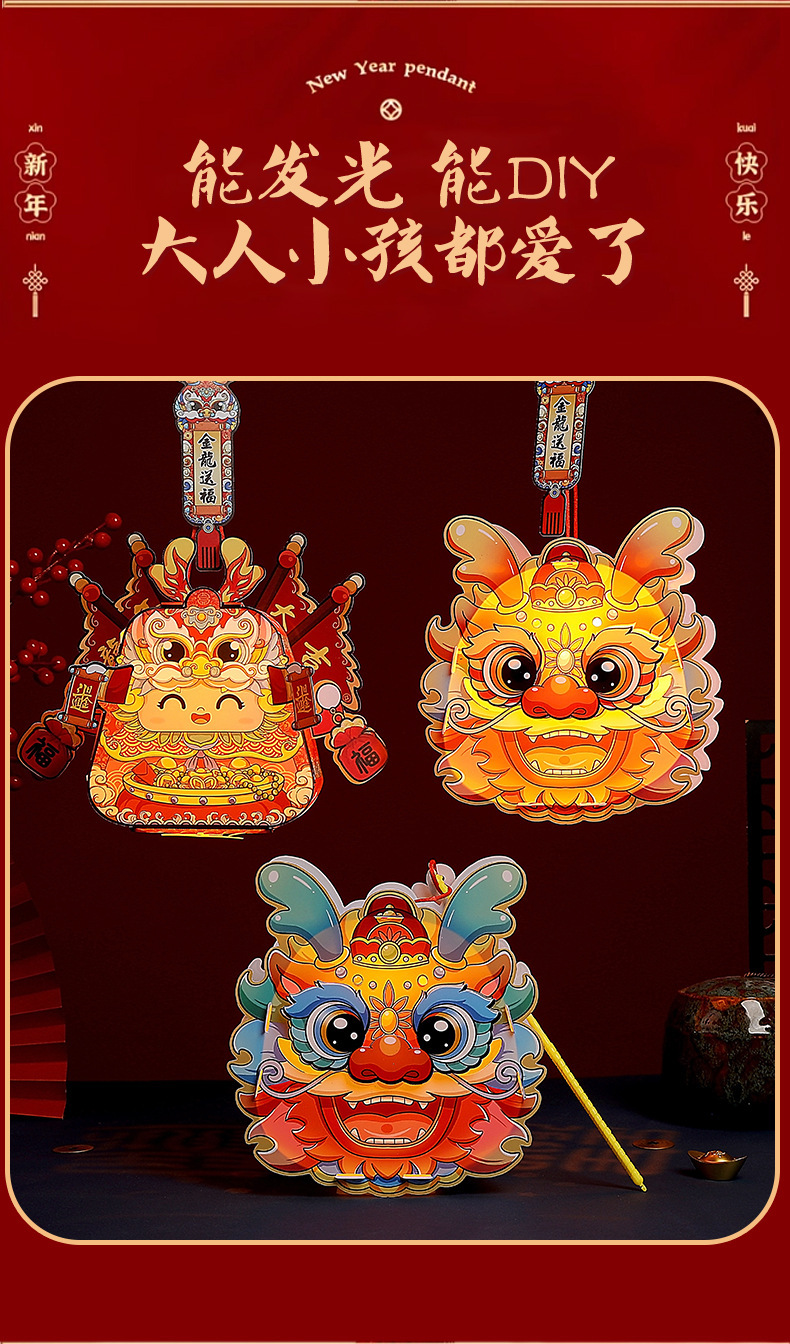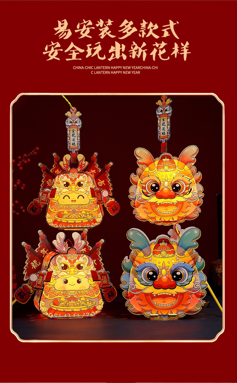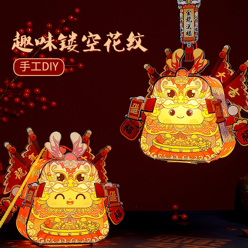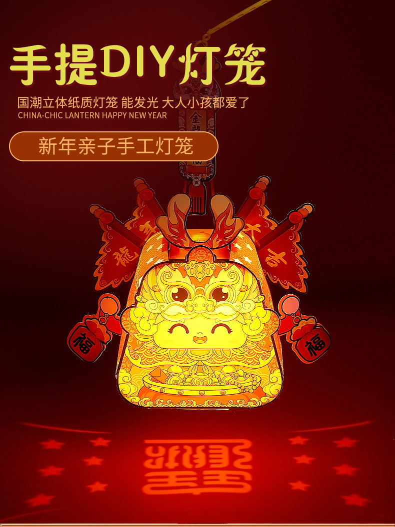 新年手提灯笼 龙年国潮风儿童手工diy灯笼制作材料包春节手提花灯