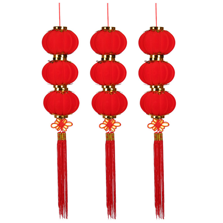 植绒小灯笼串挂饰大红灯笼春节元旦户外街道树上装饰结婚场景布置