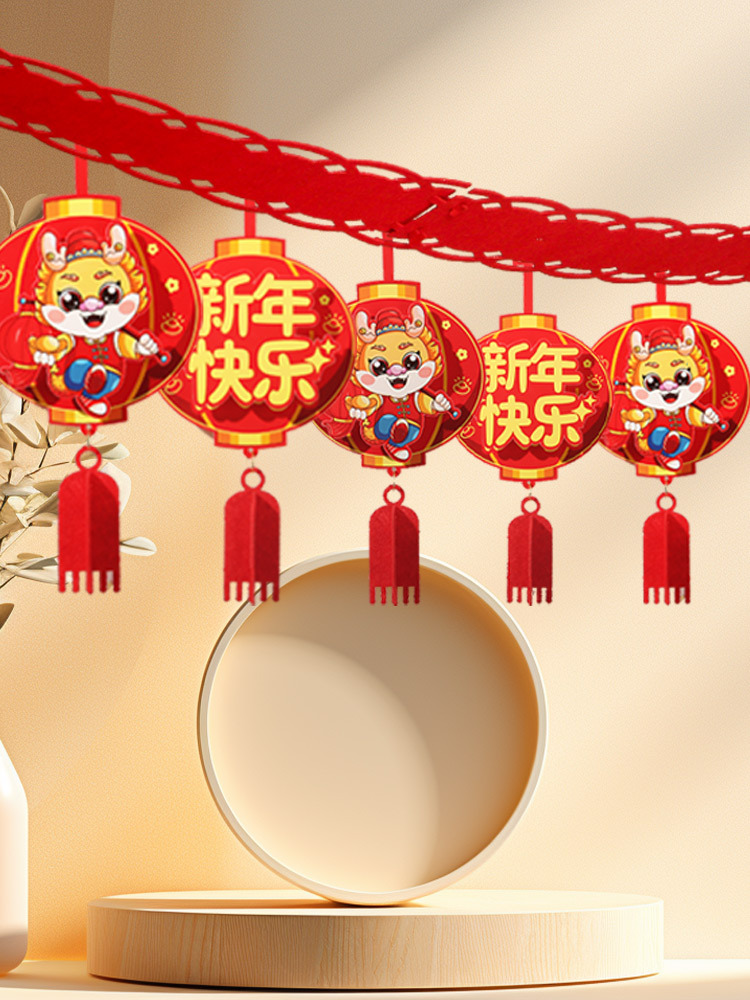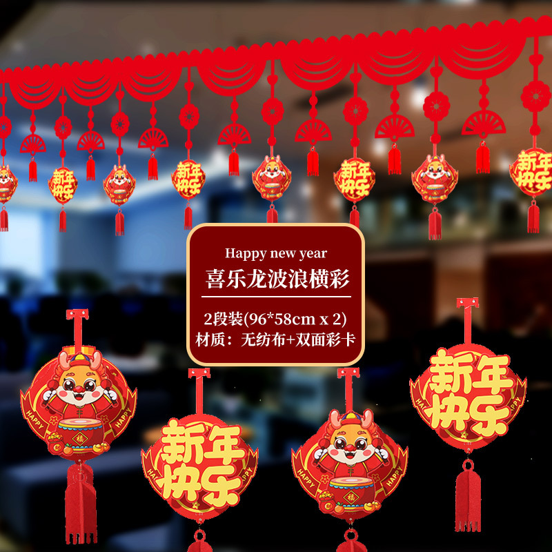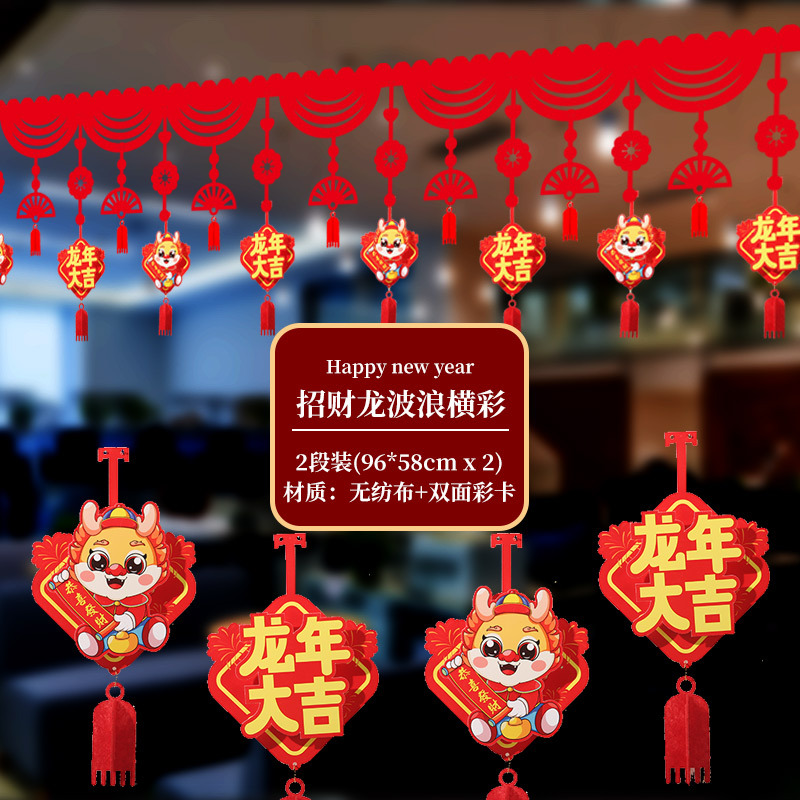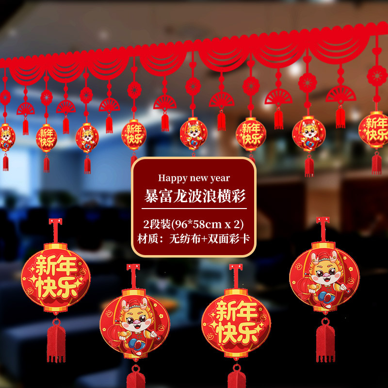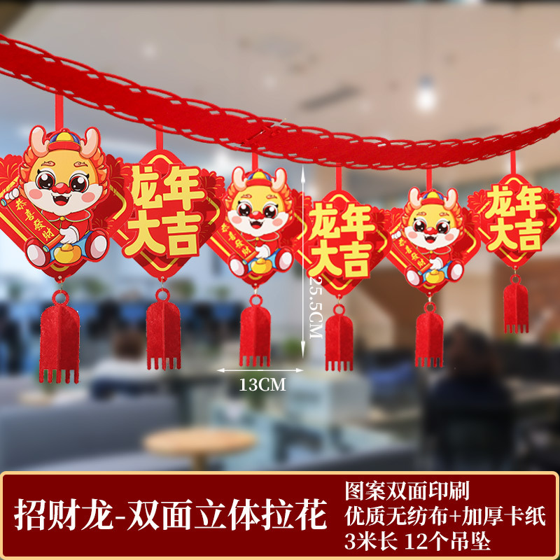 2024龙年新年元旦春节福字装饰拉旗拉花商场装扮布置灯笼彩条吊旗