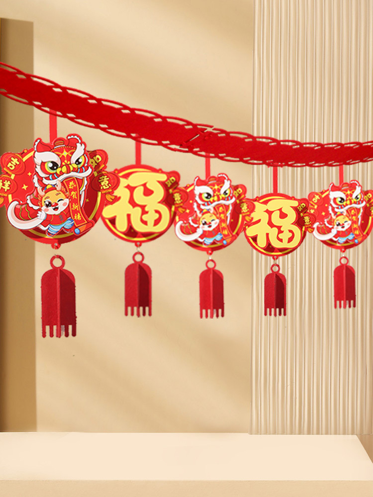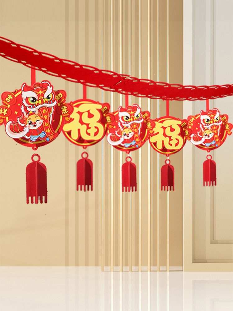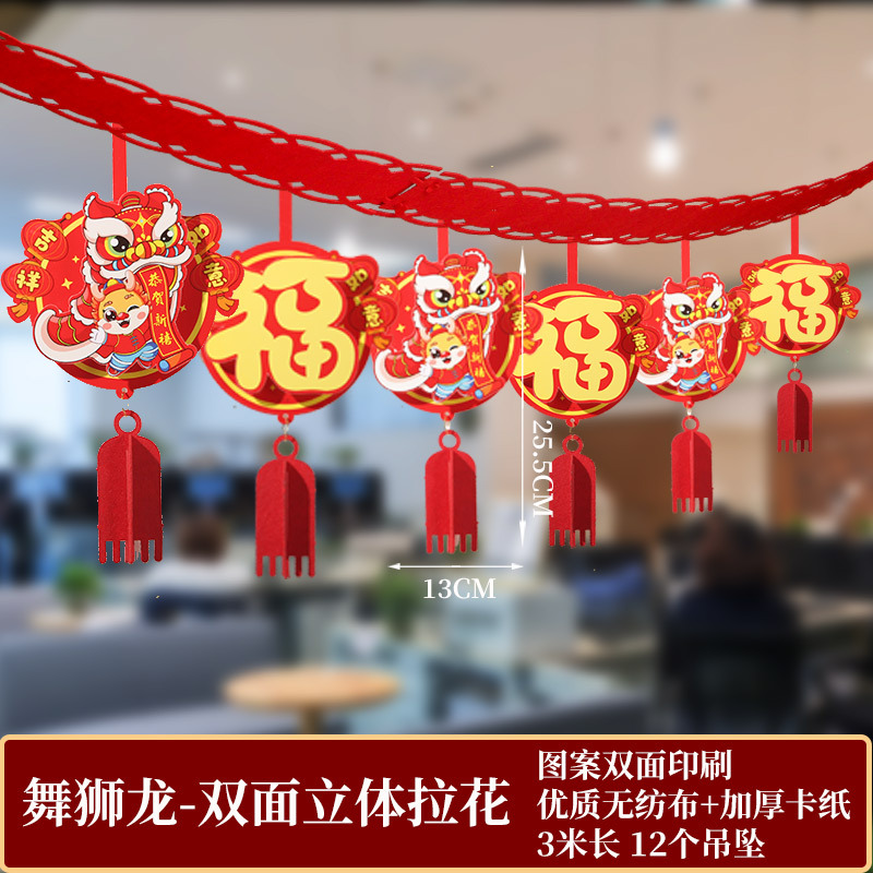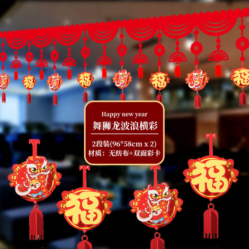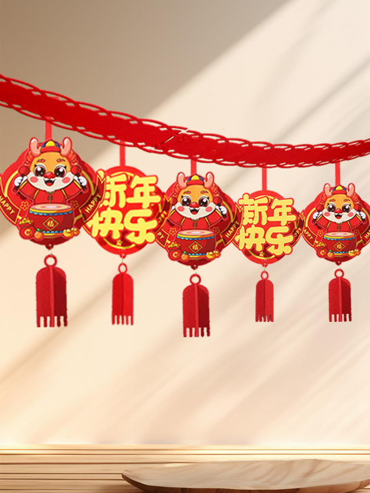 2024龙年新年元旦春节福字装饰拉旗拉花商场装扮布置灯笼彩条吊旗