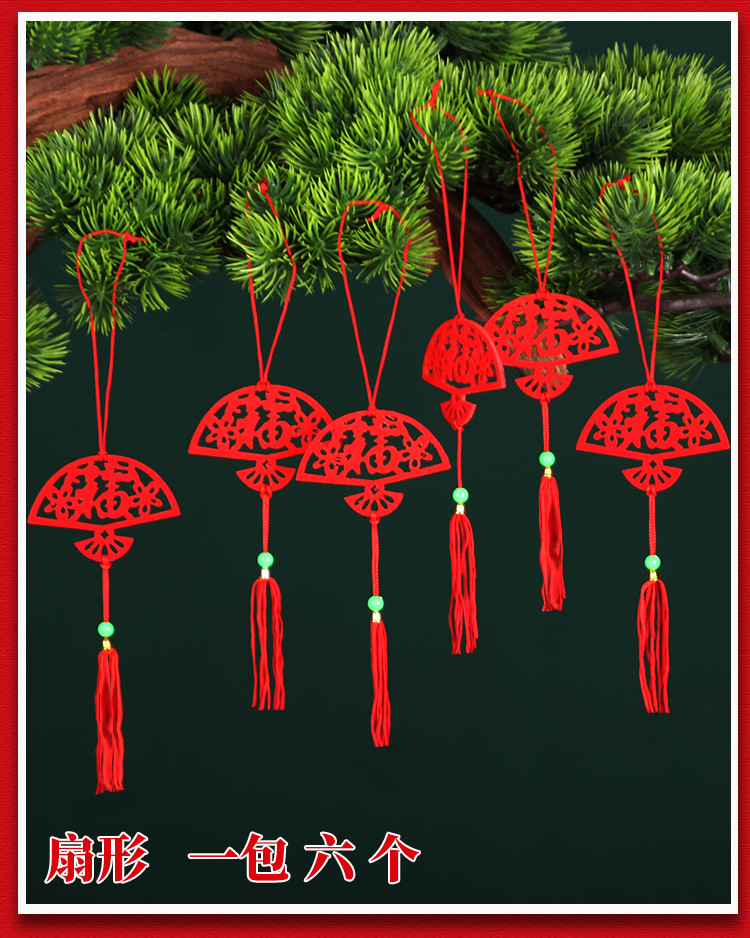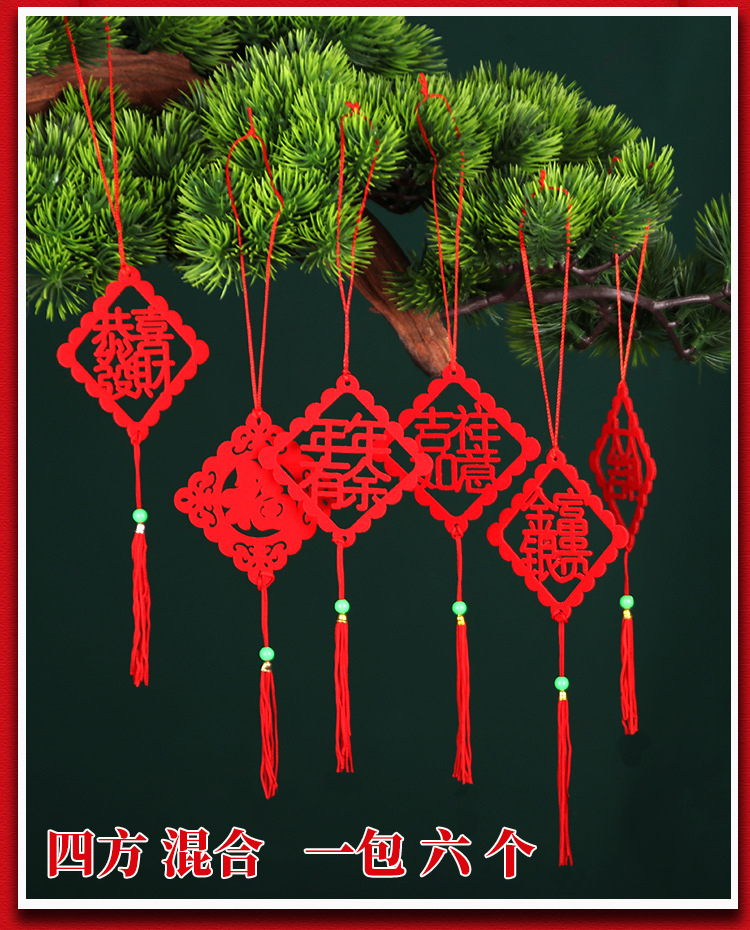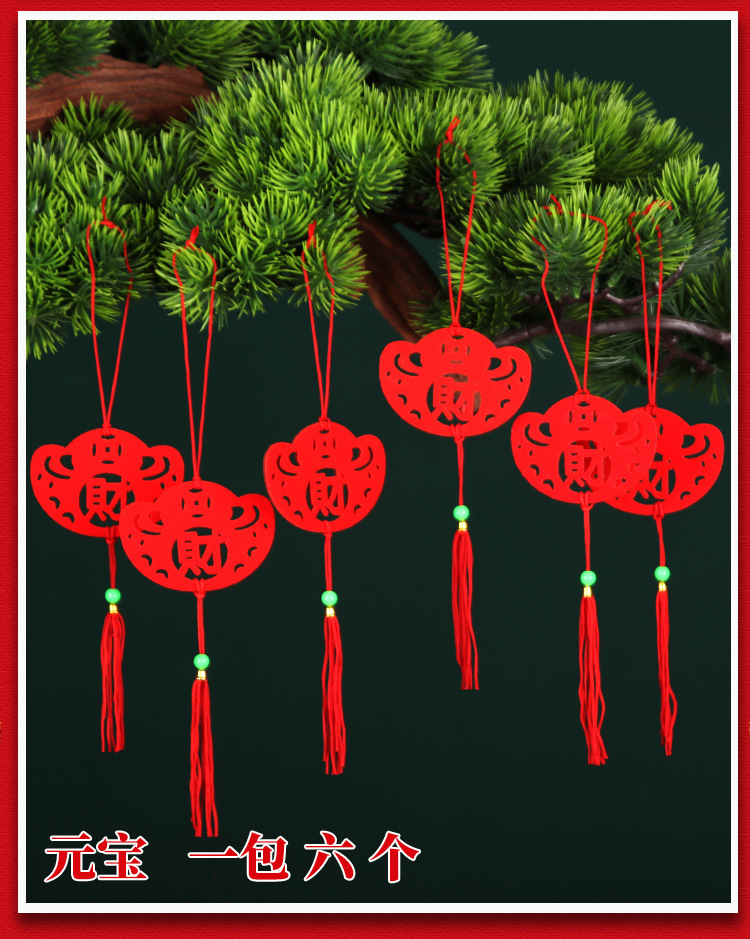 新年春节植绒盆景小灯笼挂饰 节日场景布置防水 室内装饰盆栽挂件