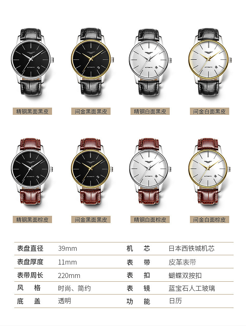 冠琴S33进口镂空全自动机械表 潮流防水正品防水表 男士手表 商务