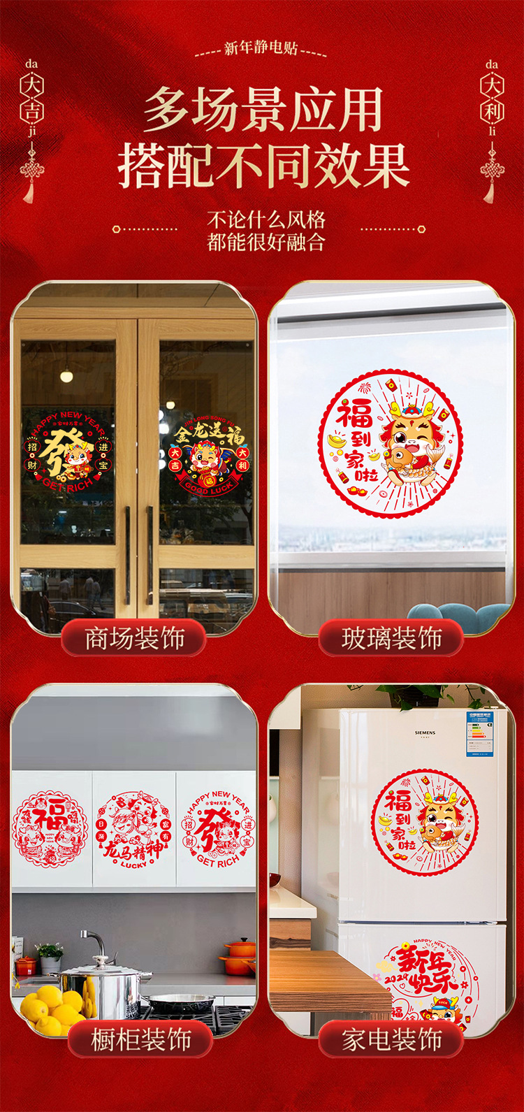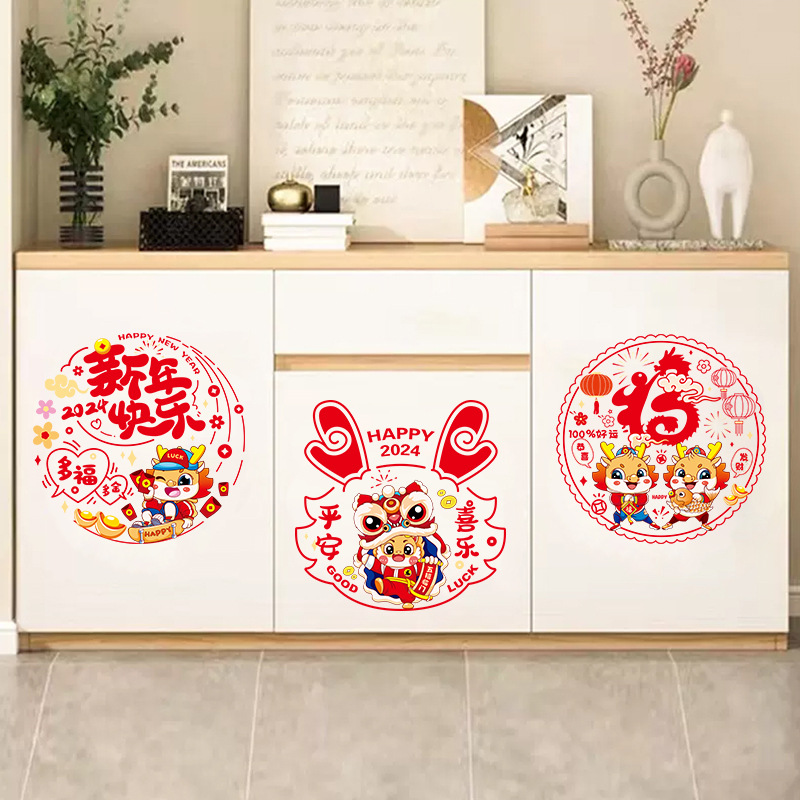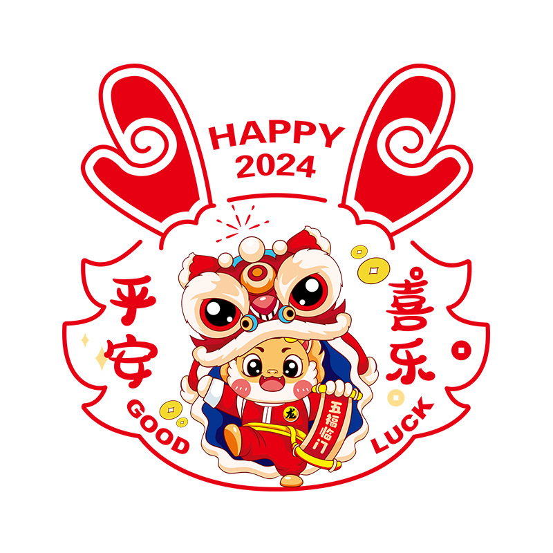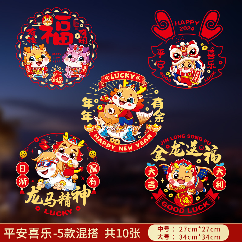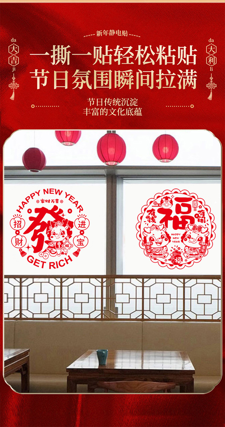 2024龙年彩色窗花生肖静电贴过年春节装饰用品新年福字贴卡通窗贴