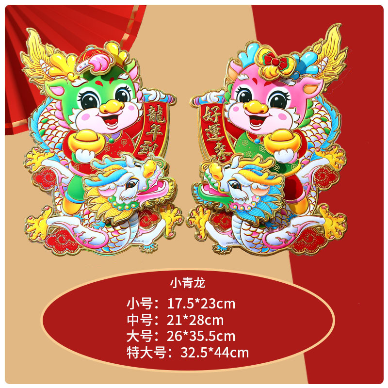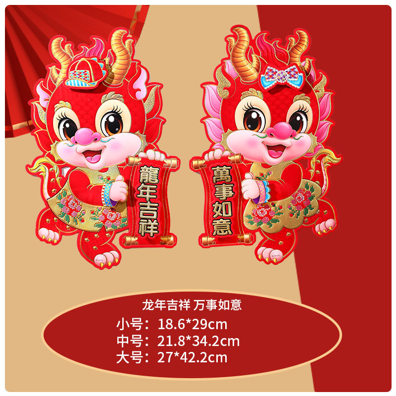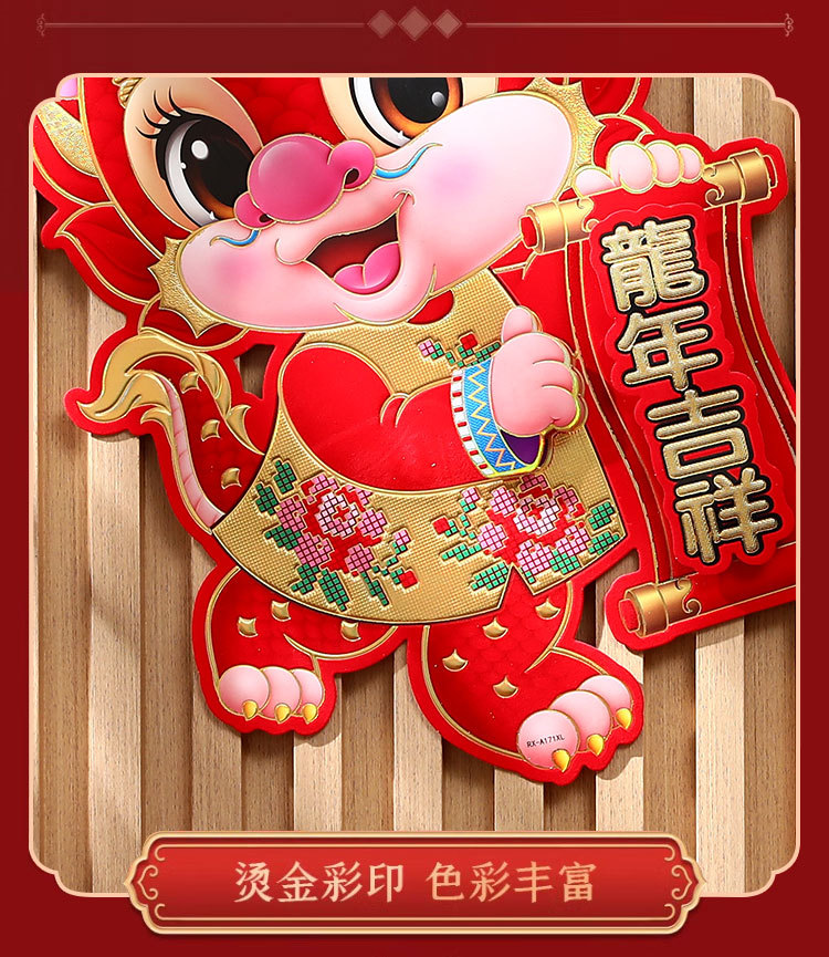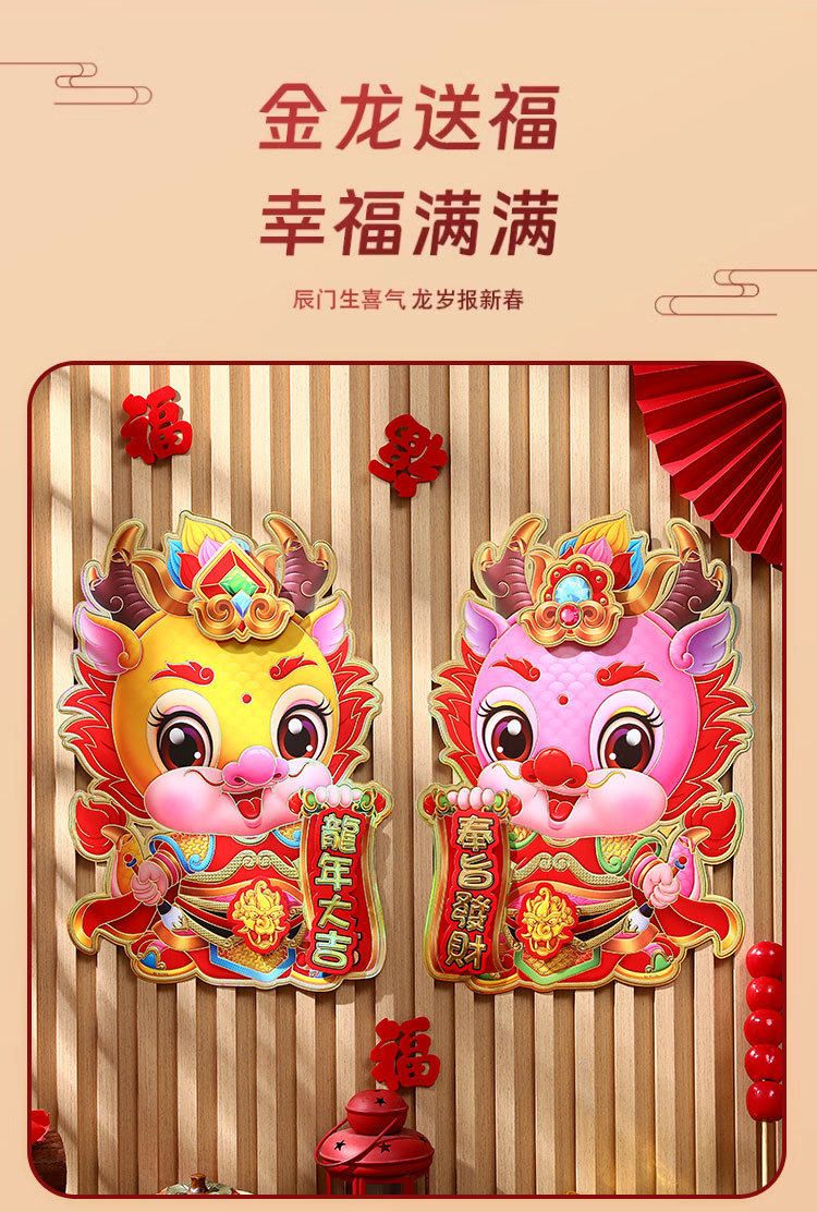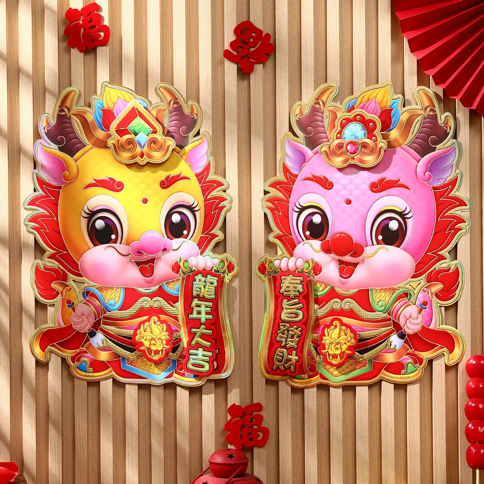 2024龙年立体烫金福字立体门贴装饰新年春节年画卡通生肖福字对贴