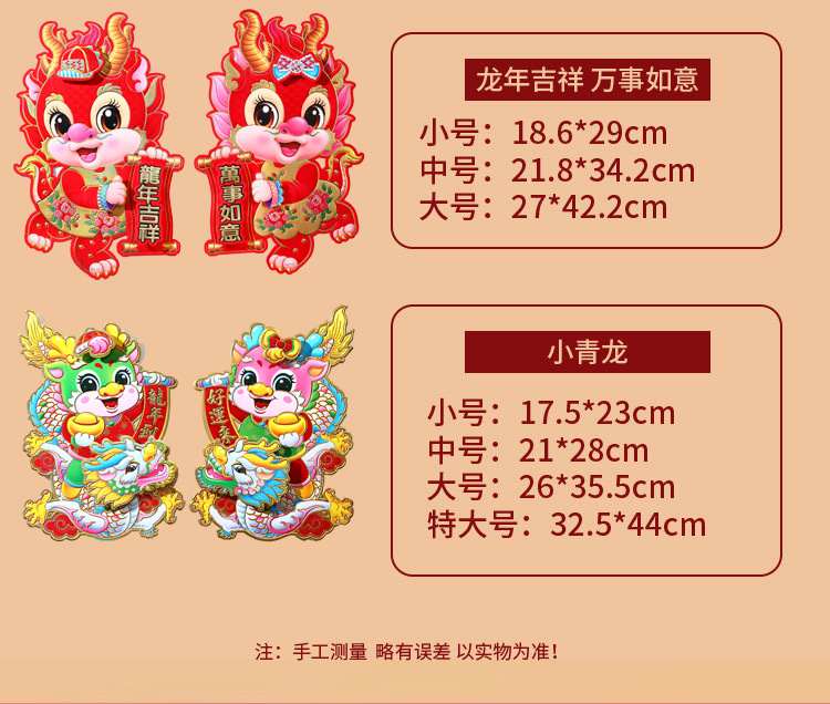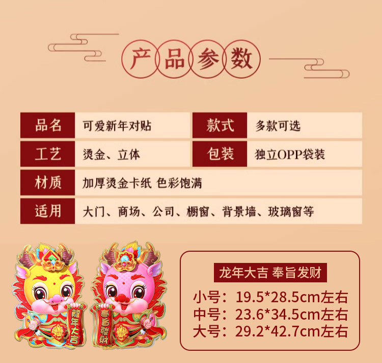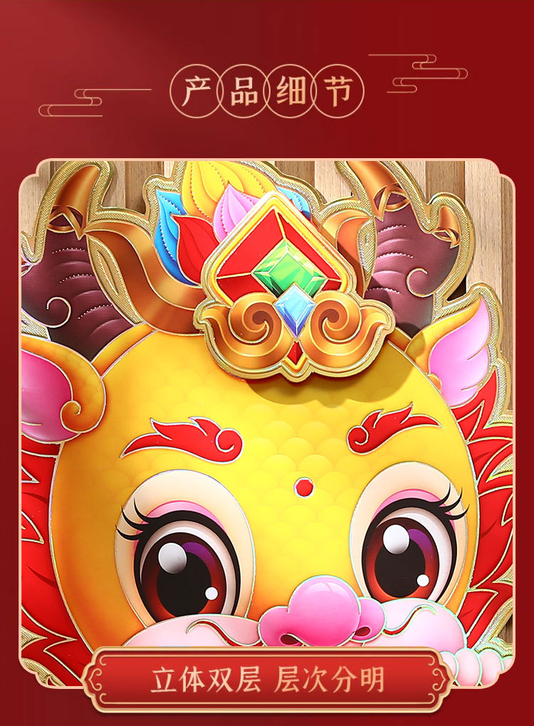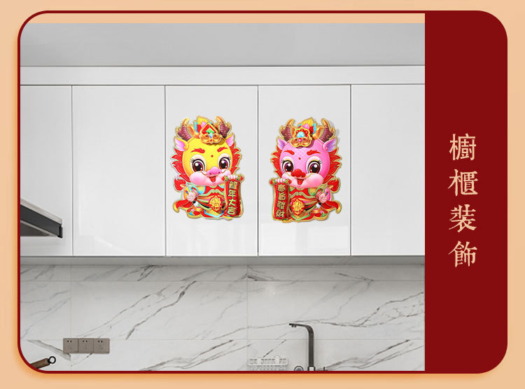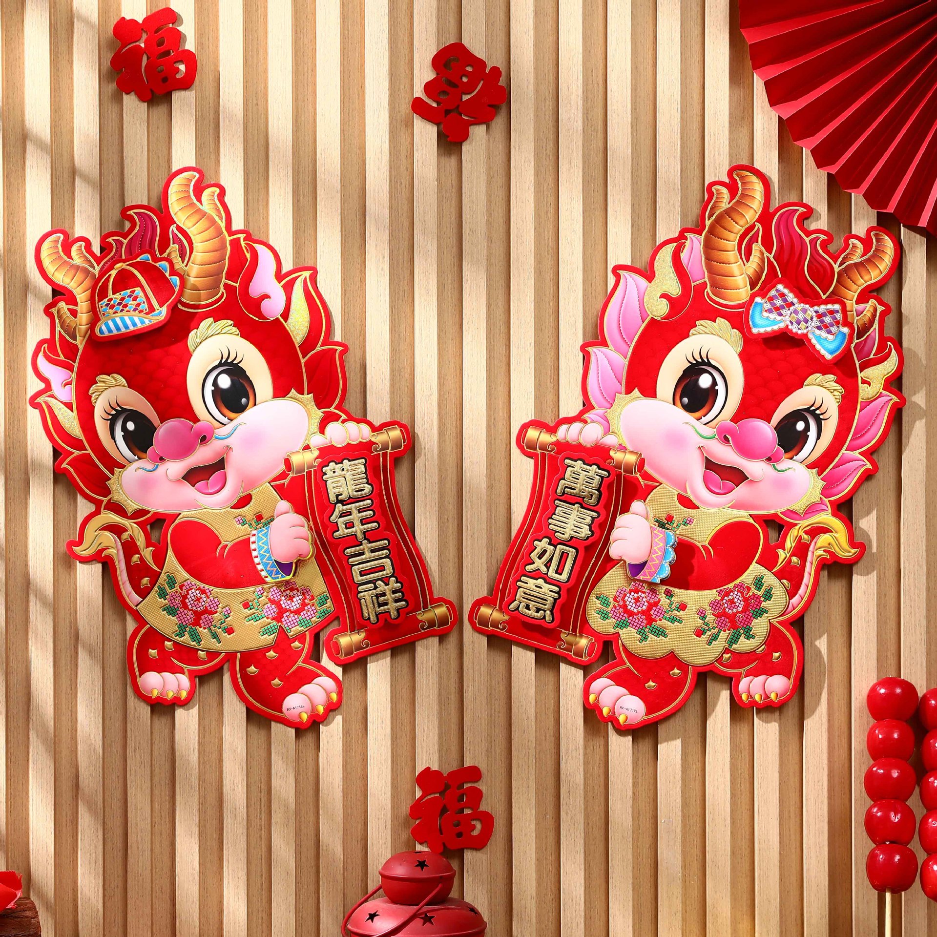 2024龙年立体烫金福字立体门贴装饰新年春节年画卡通生肖福字对贴