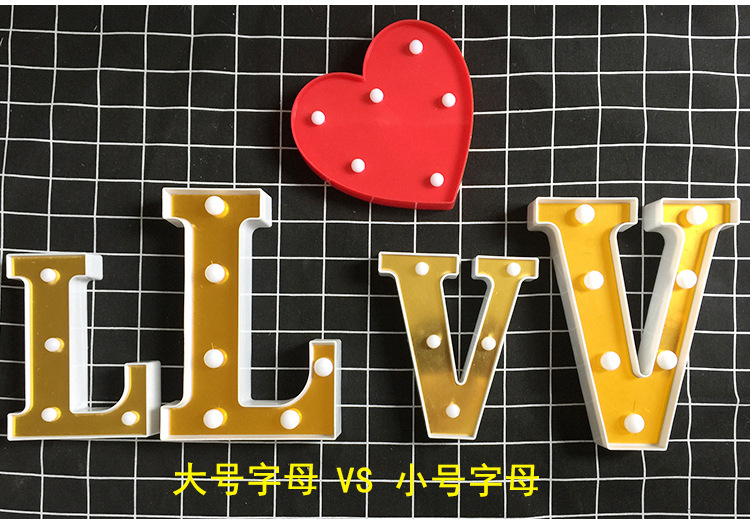 LED字母灯烫金银色英文小字母灯灯情人节表白装饰灯婚庆造型灯