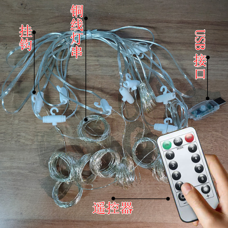 | usb 8 function remote control curtain light [with hook]](USB 8功能 遥控窗帘灯【带挂钩】) | USD $3.14 | 888737 set available |