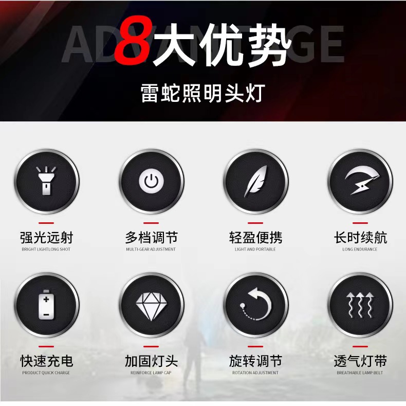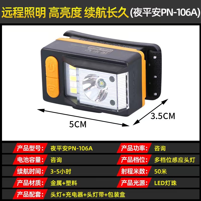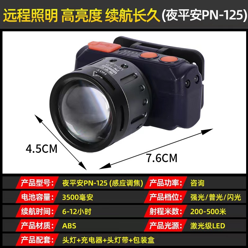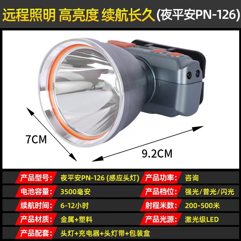 感应工地探照灯125头戴式126夜跑钓鱼巡逻灯智能感应强光头灯led
