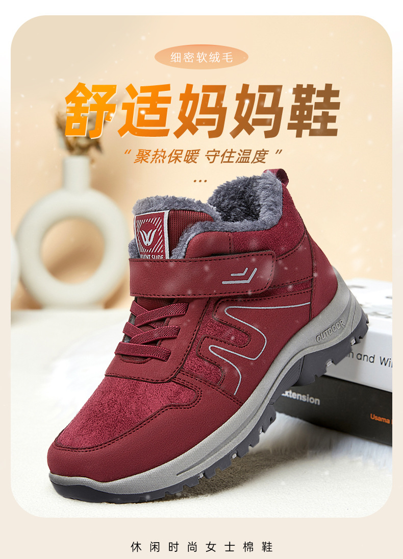 健步鞋女2024冬季新款雪地靴抖音直播女靴加绒加厚短靴保暖妈妈鞋