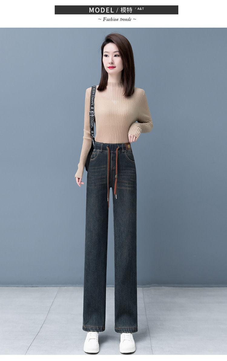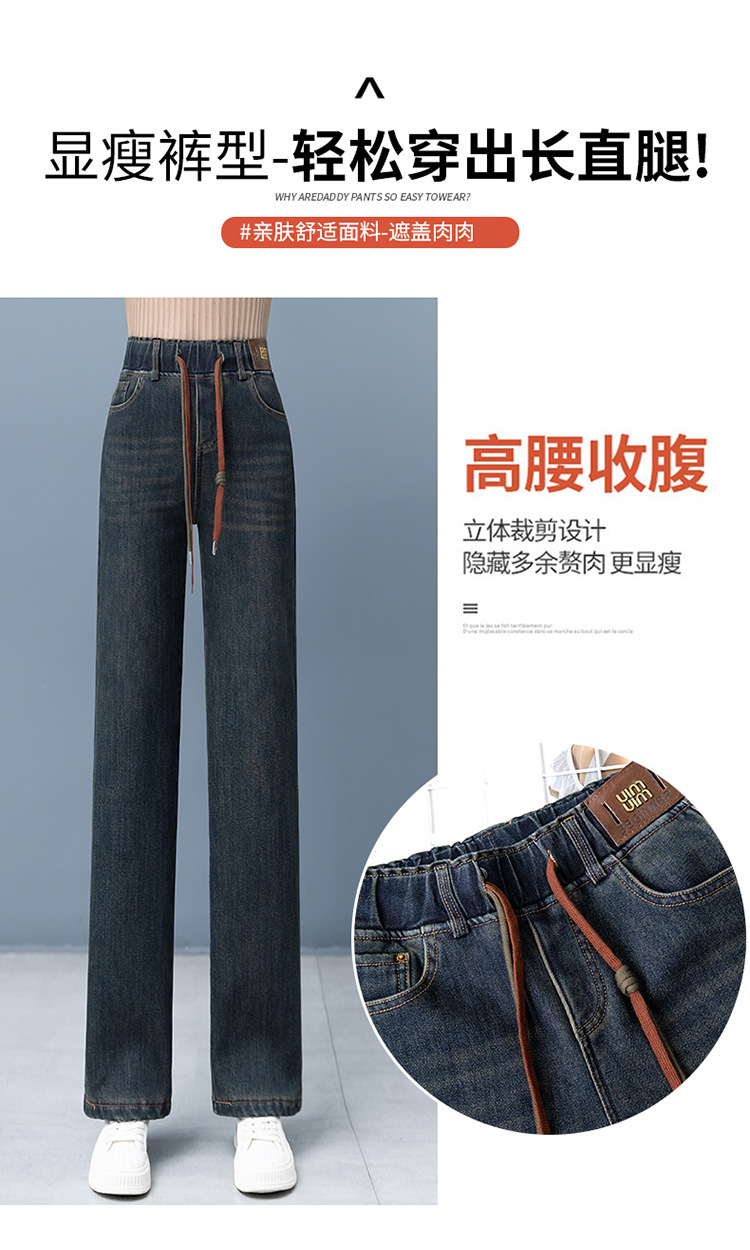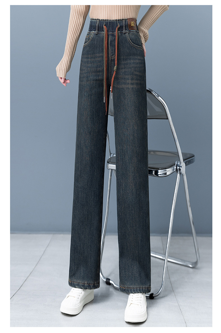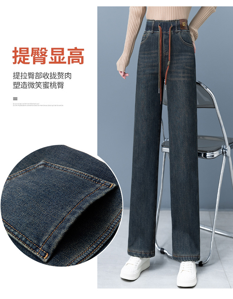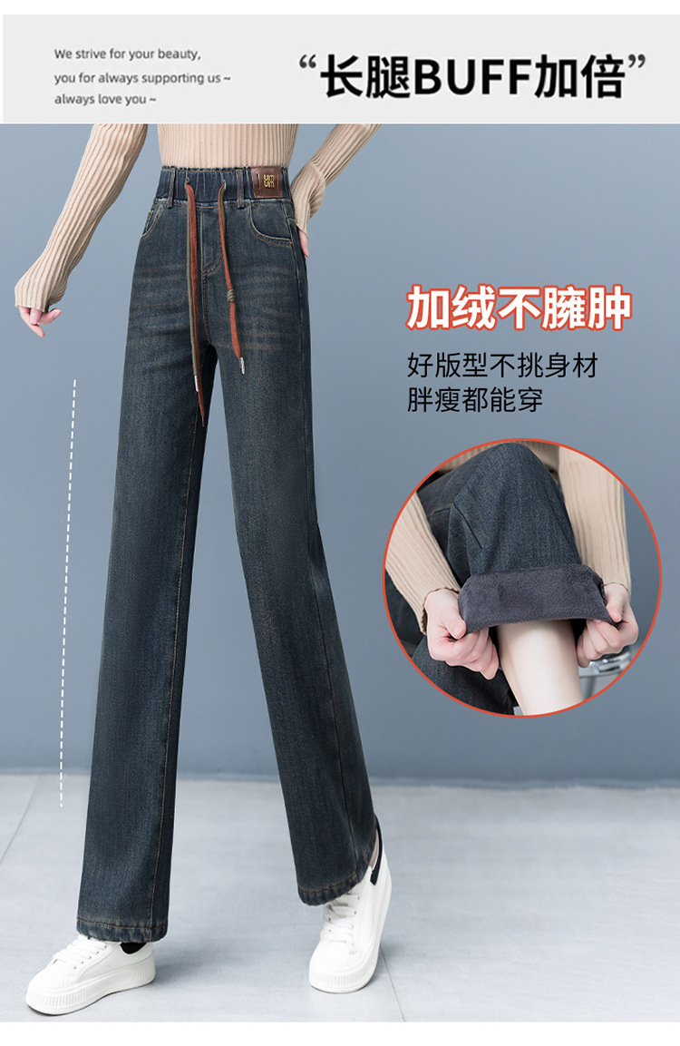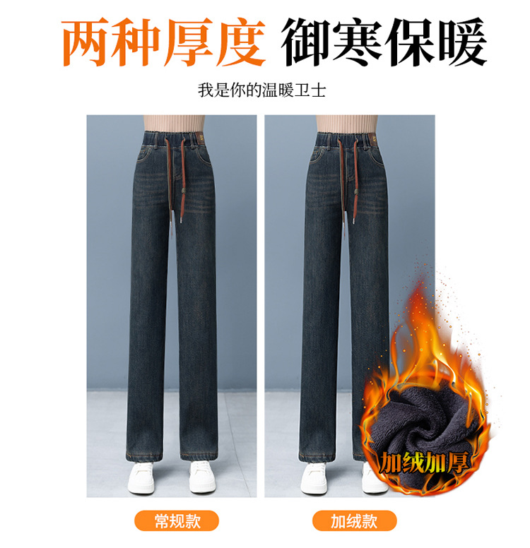 加绒加厚窄版阔腿裤牛仔裤女2023秋冬季松紧腰高腰小个子休闲直筒