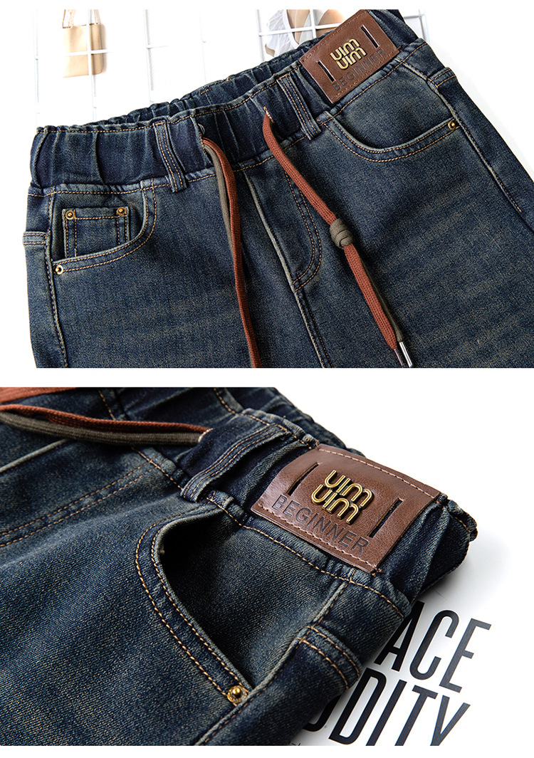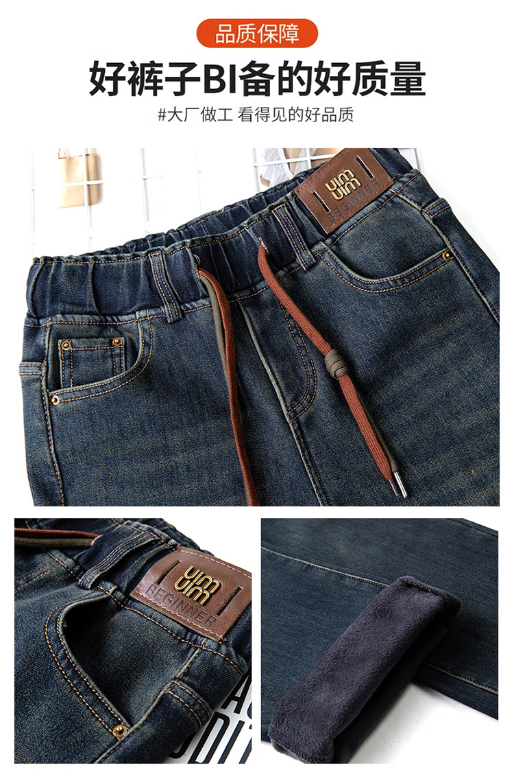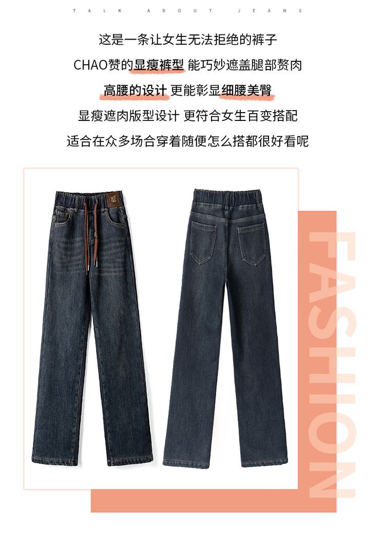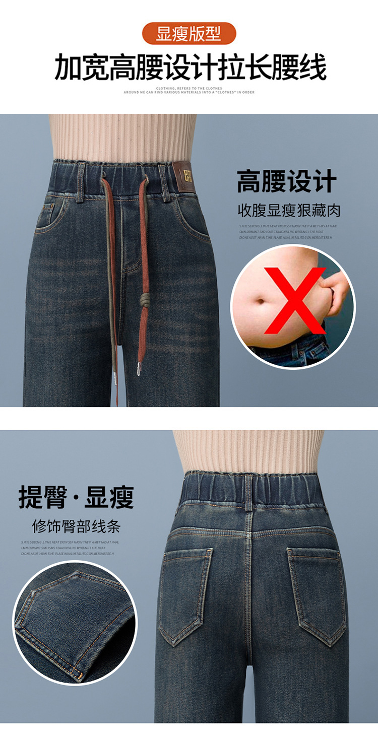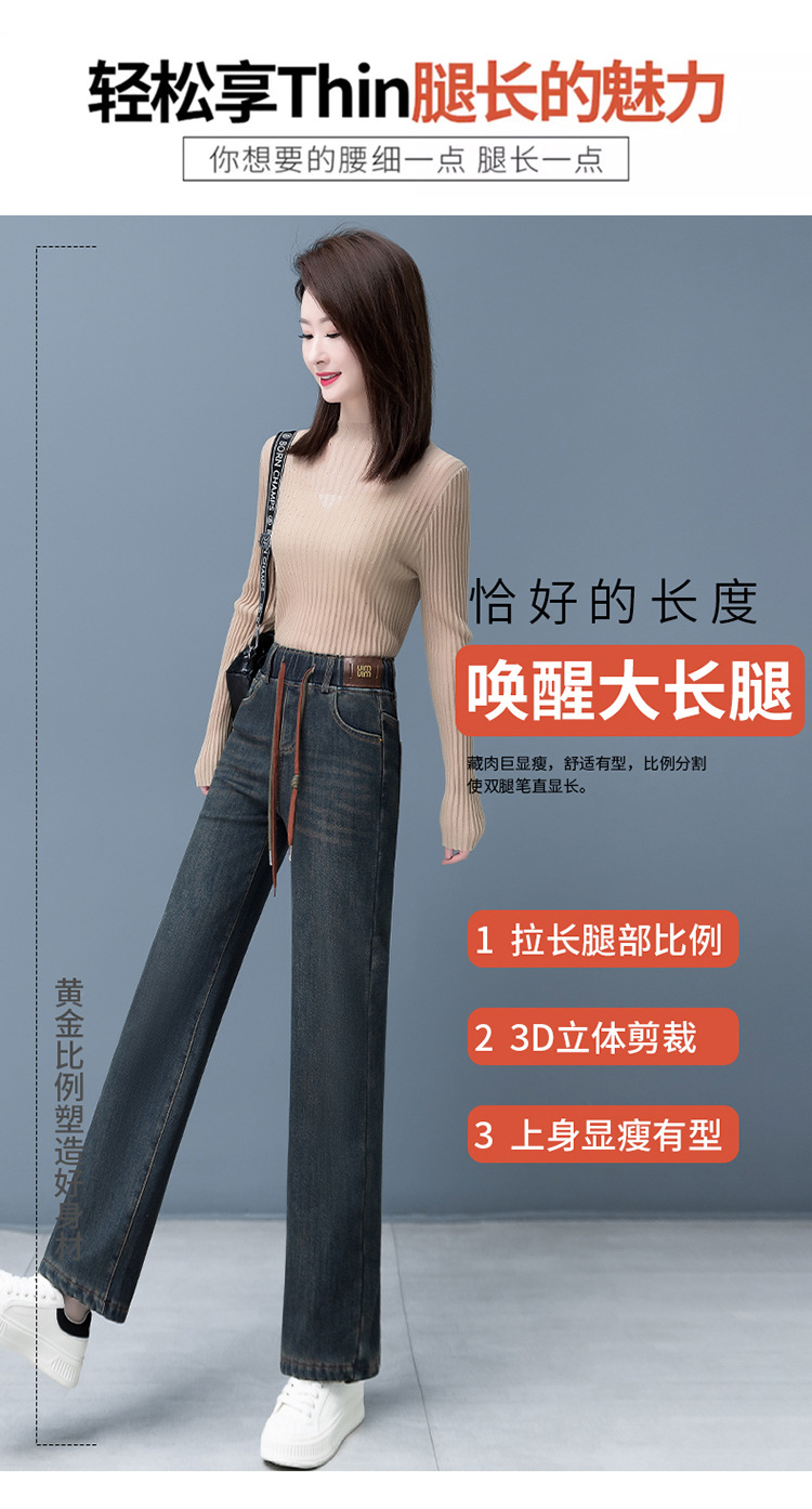 加绒加厚窄版阔腿裤牛仔裤女2023秋冬季松紧腰高腰小个子休闲直筒