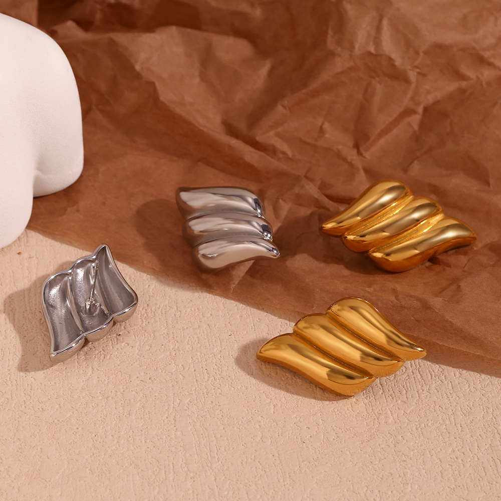 欧美时尚个性小众设计耳饰不锈钢镀18K金气质几何三层翅膀耳钉女