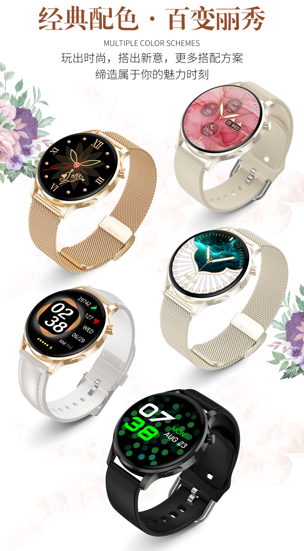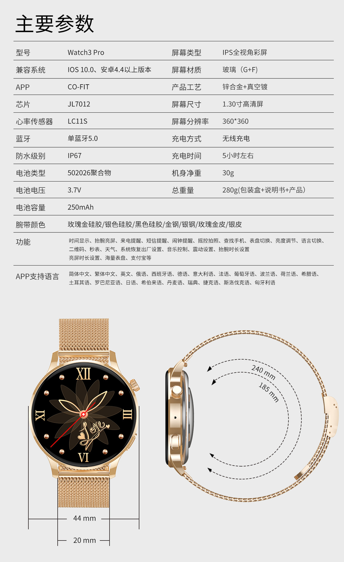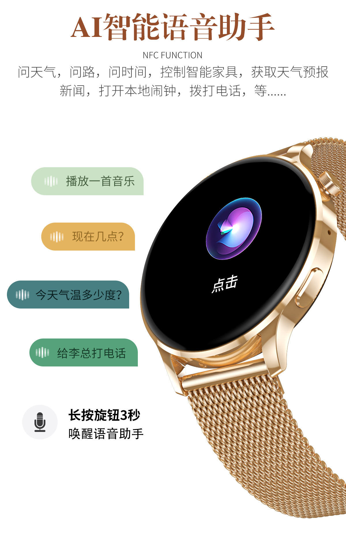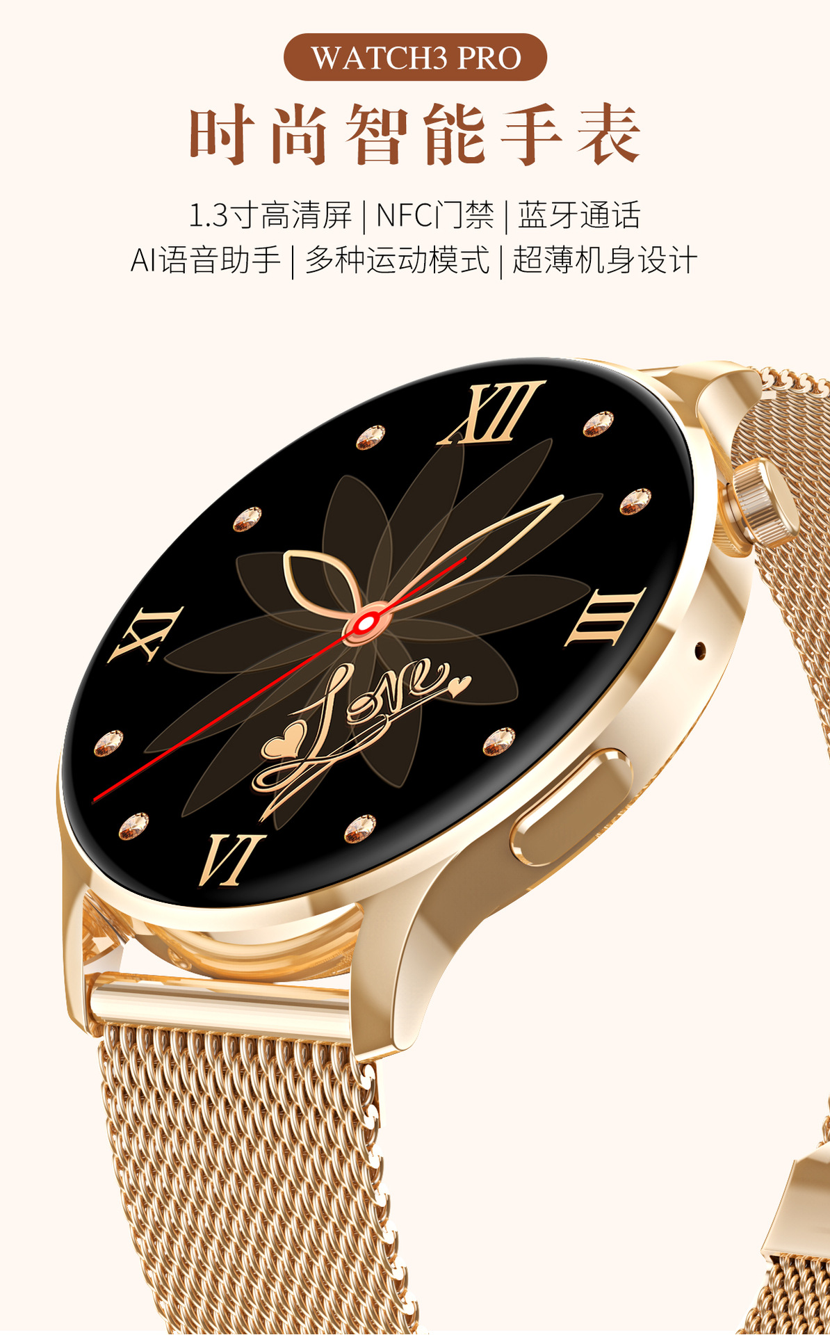 新款Watch3 Pro女性智能运动手表心率NFC支付蓝牙通话手表AI语音