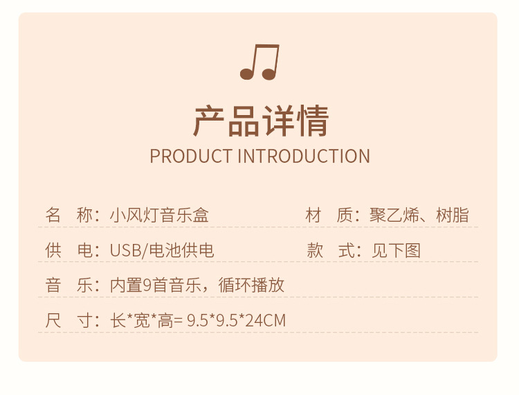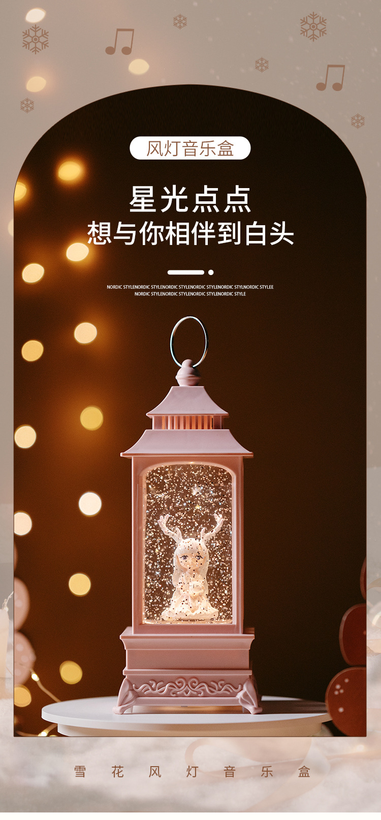 功能:内置9首音乐,音乐可独立开关;灯光飘雪;