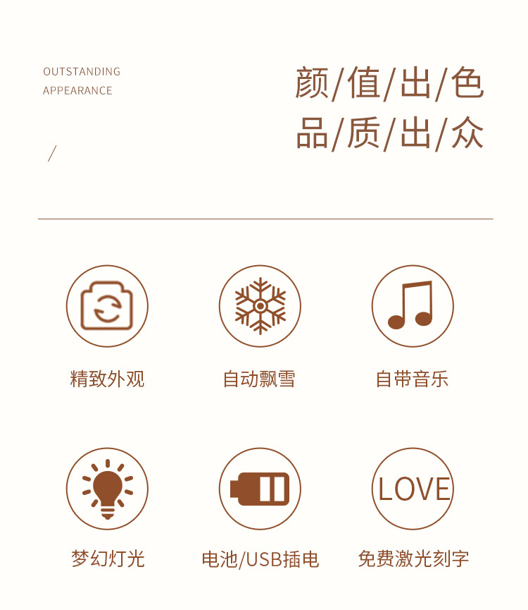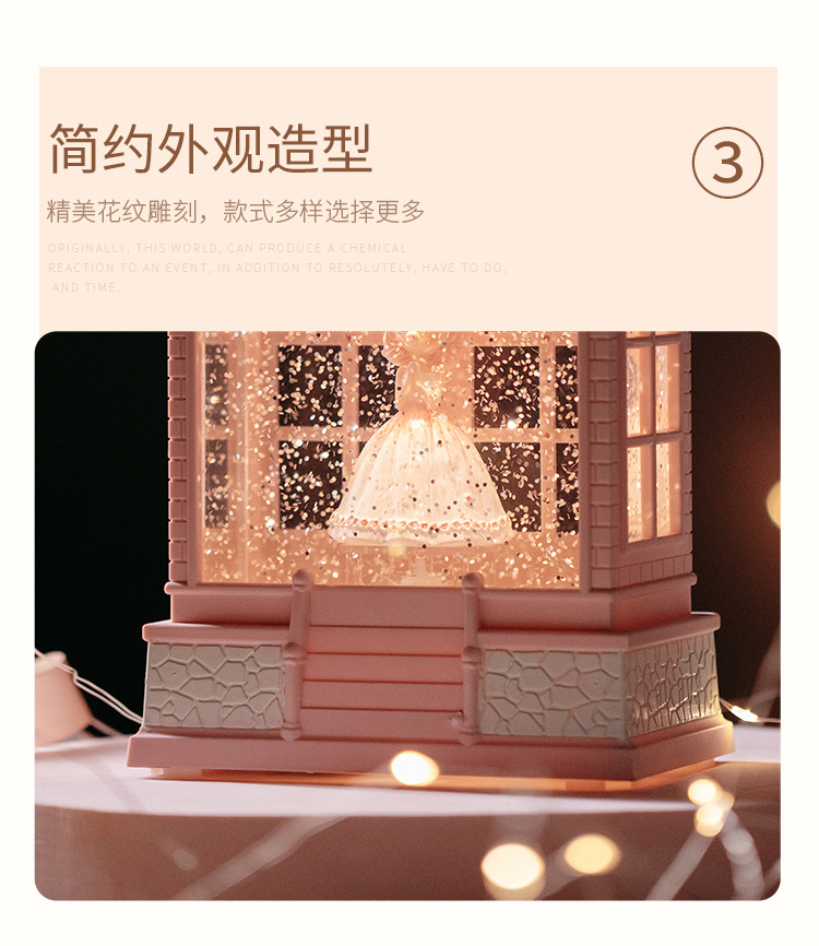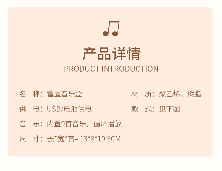 功能:内置9首音乐,音乐可独立开关;灯光飘雪;