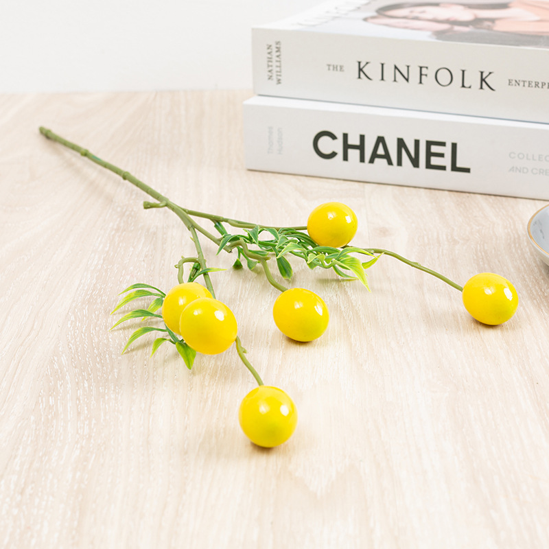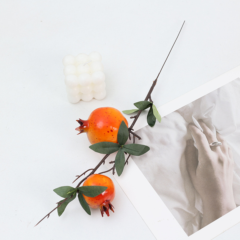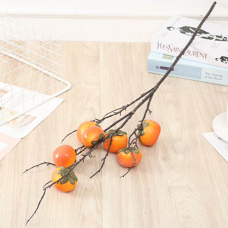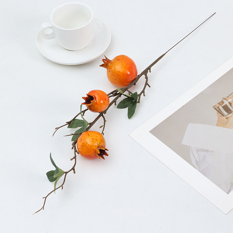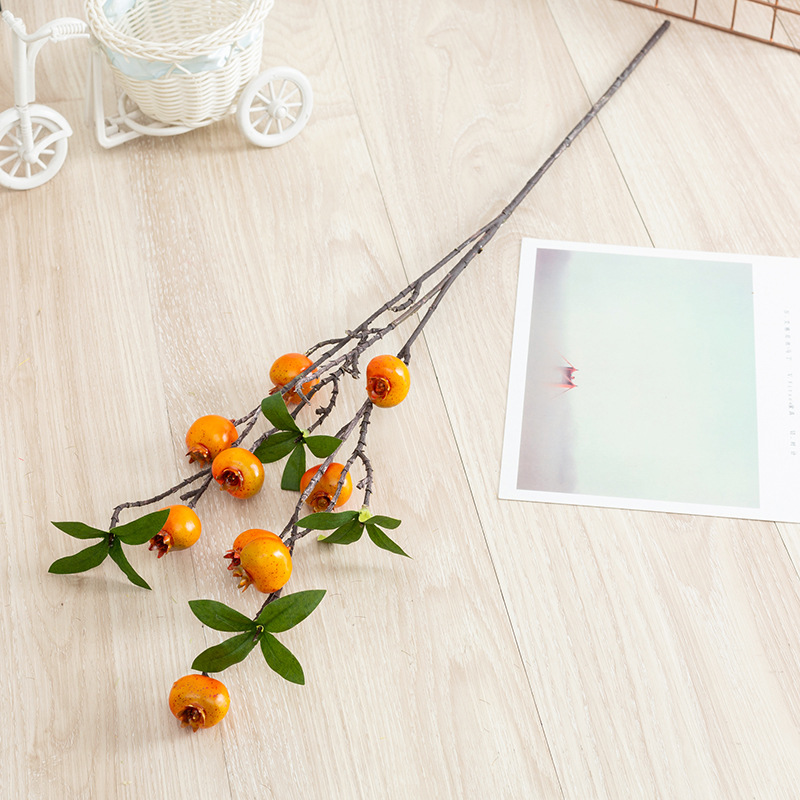 仿真花柿子石榴单支泡沫果仿真果枝6头柠檬客厅玄关摆件新年花