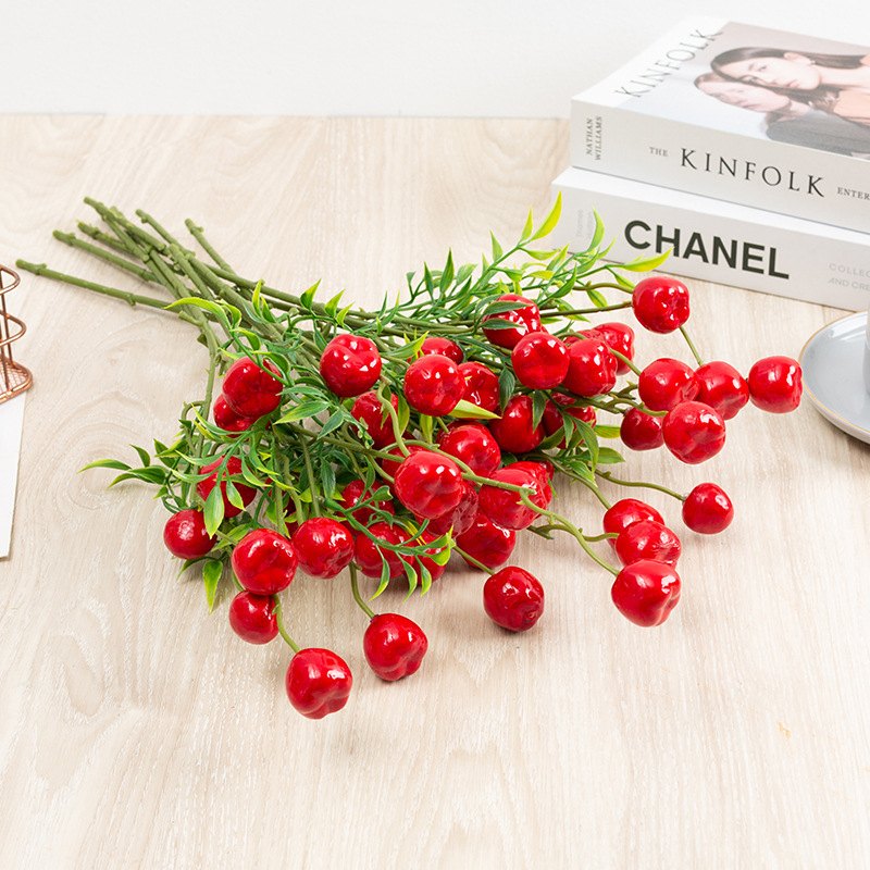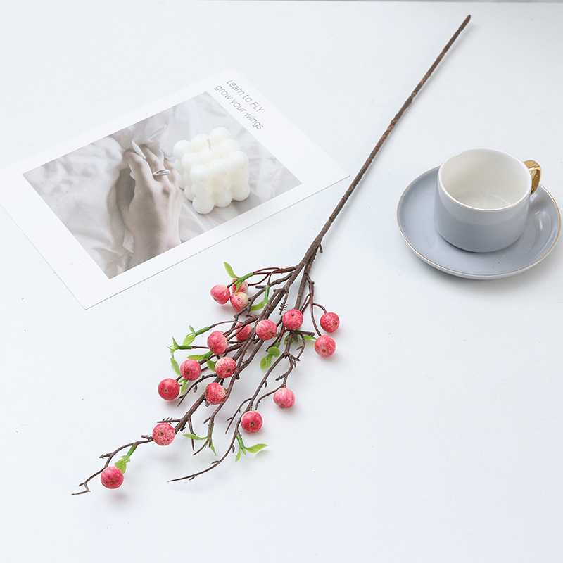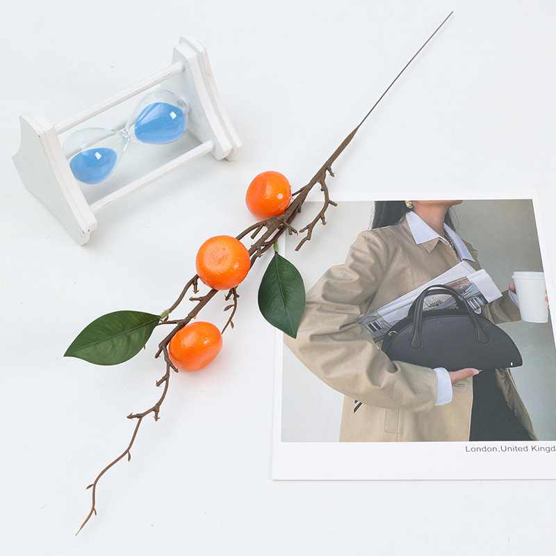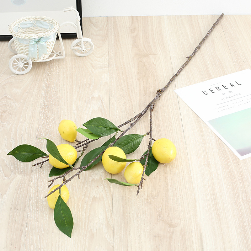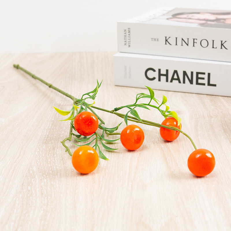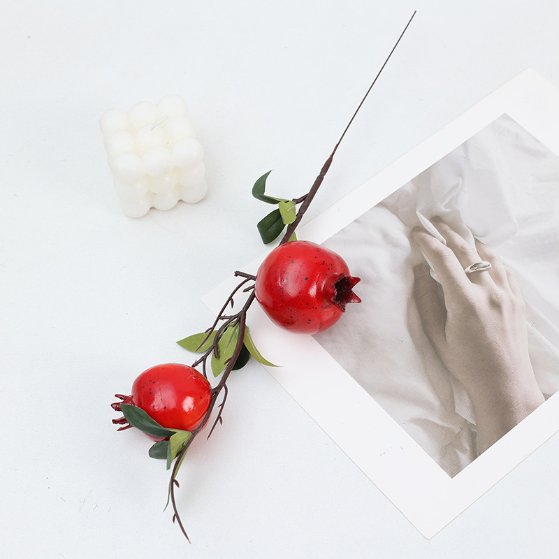 仿真花柿子石榴单支泡沫果仿真果枝6头柠檬客厅玄关摆件新年花