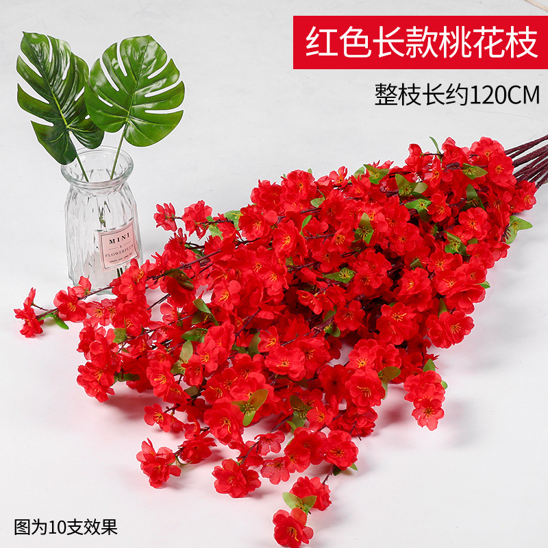 仿真桃花枝假桃花树梅花假花枝婚庆装饰花仿真植物室外花园林造景