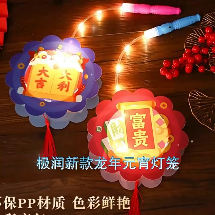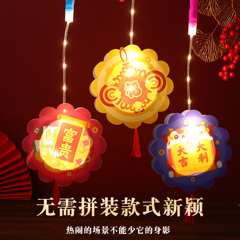 新款龙年元宵灯笼古风diy儿童中式手提手工传统诗词发光花灯玩具