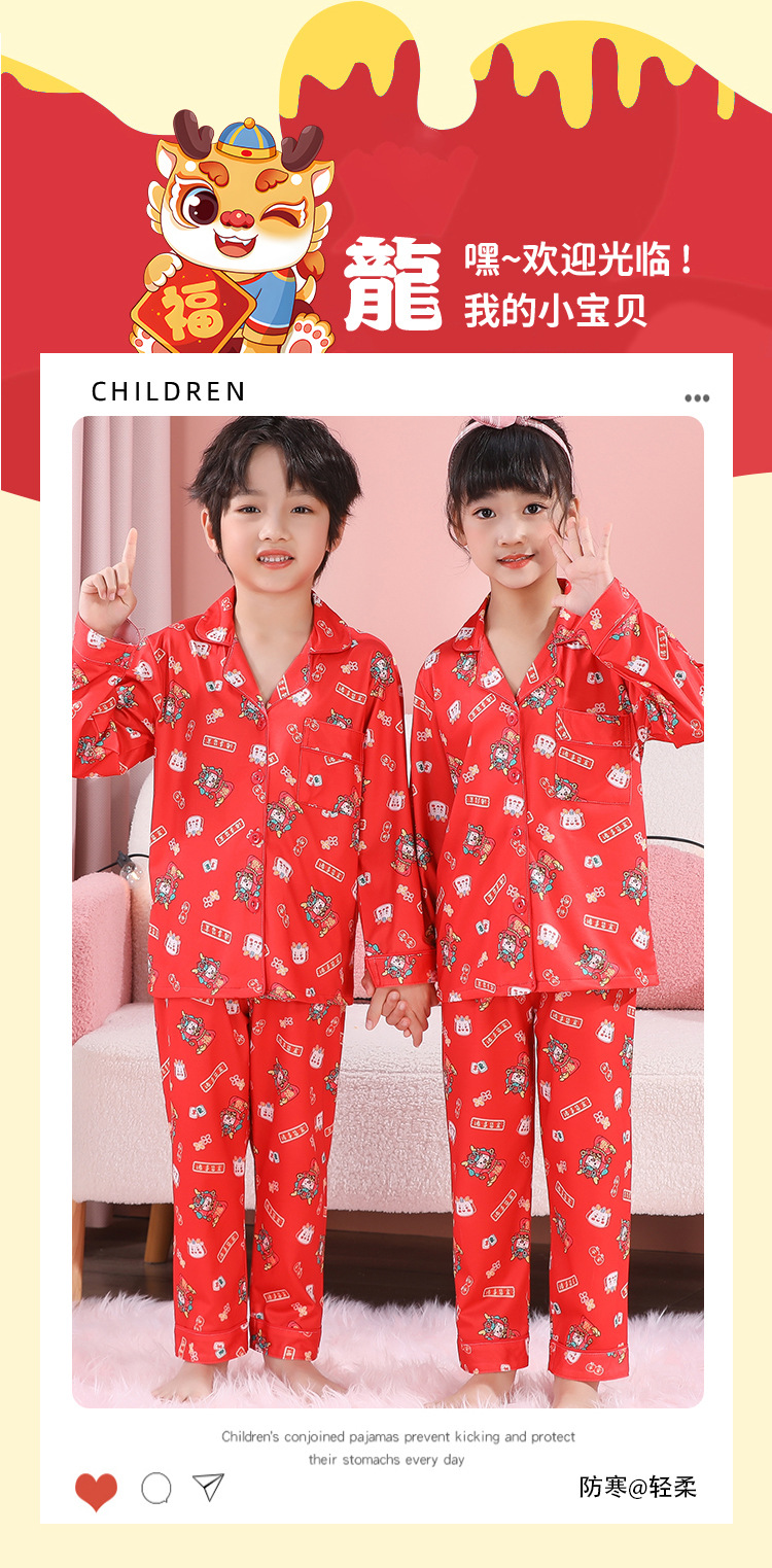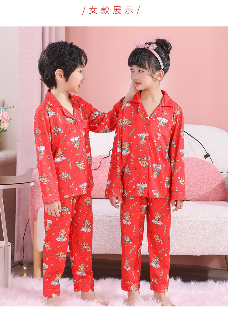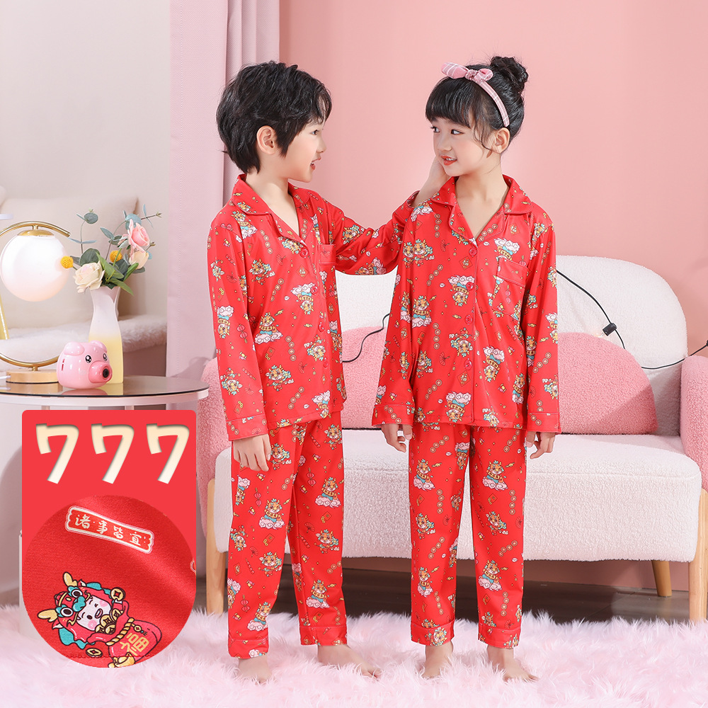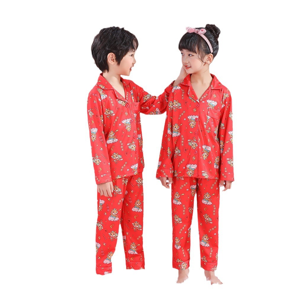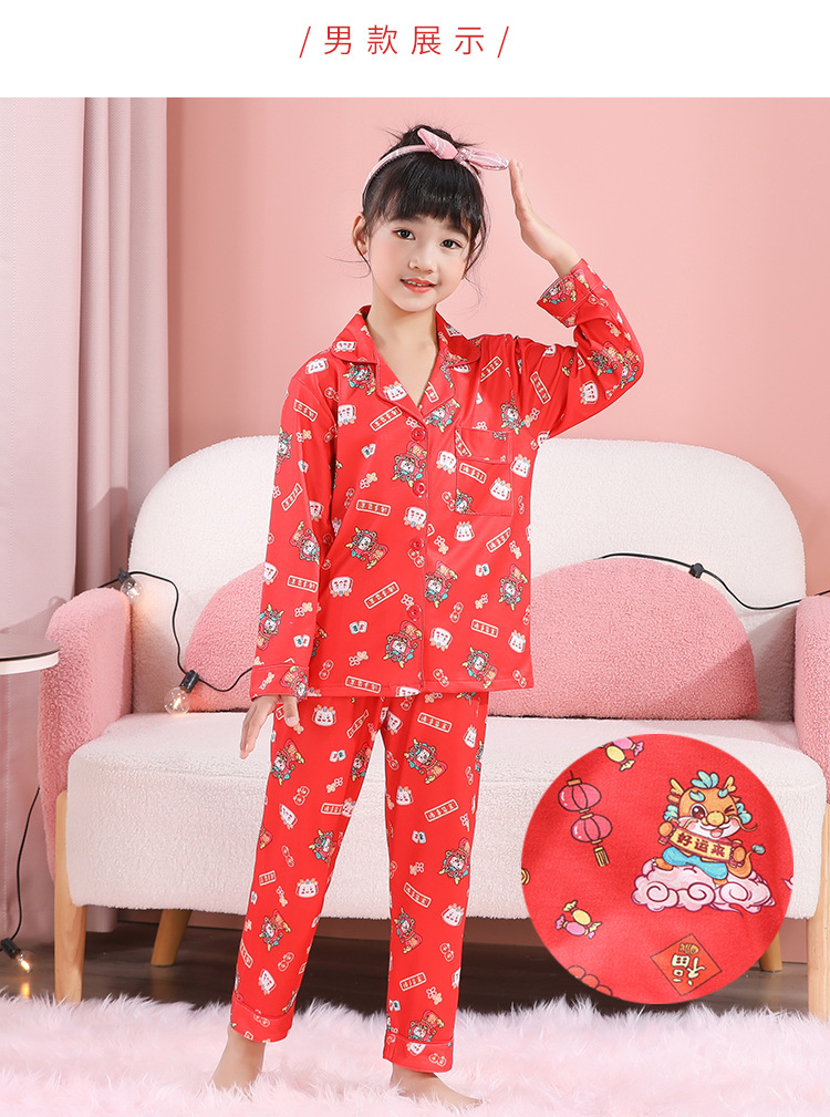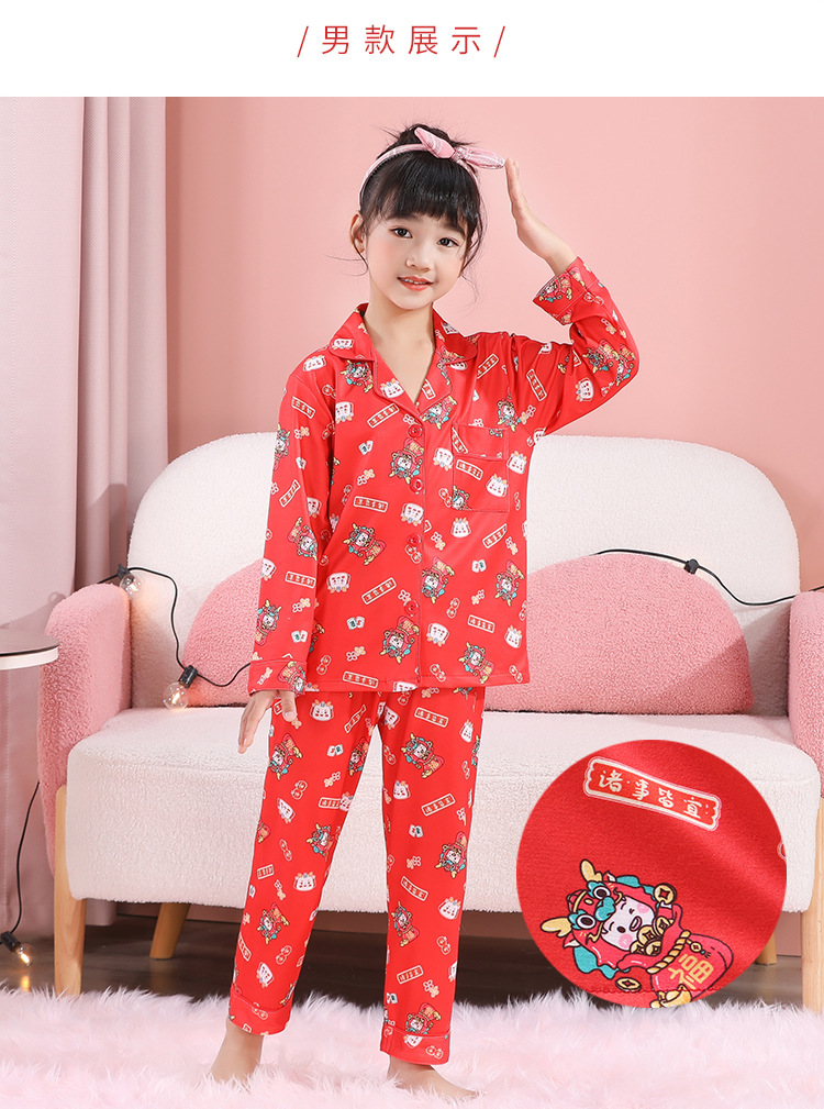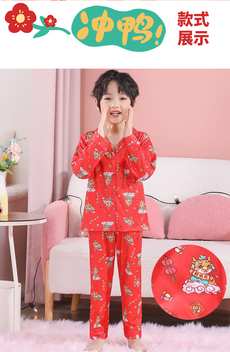 男女童本命年睡衣开衫翻领儿童新年款喜庆大红家居服秋衣秋裤批发