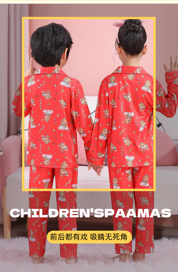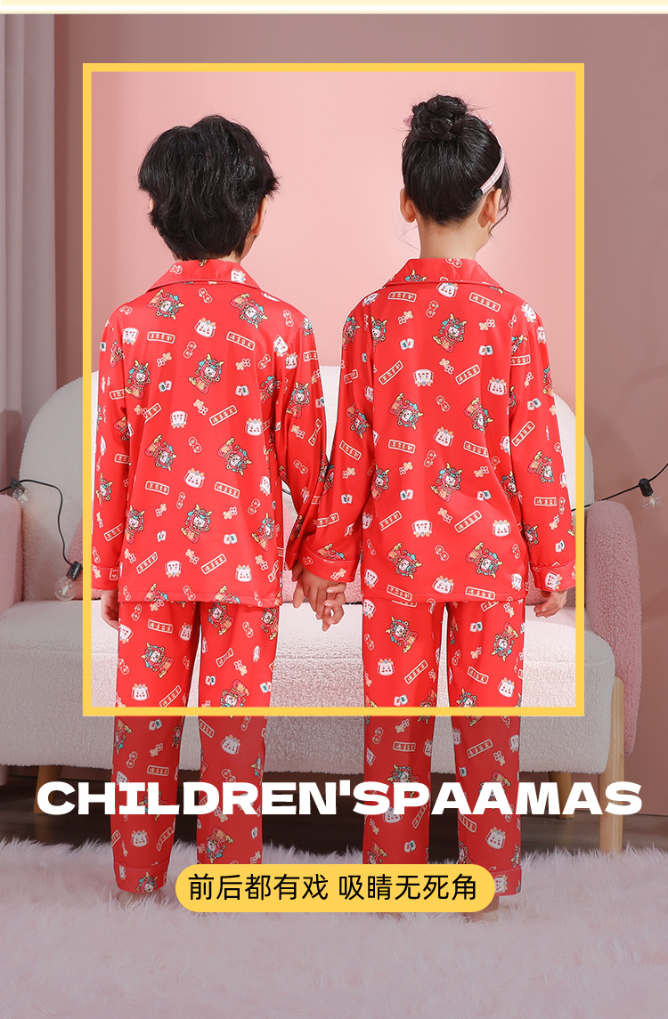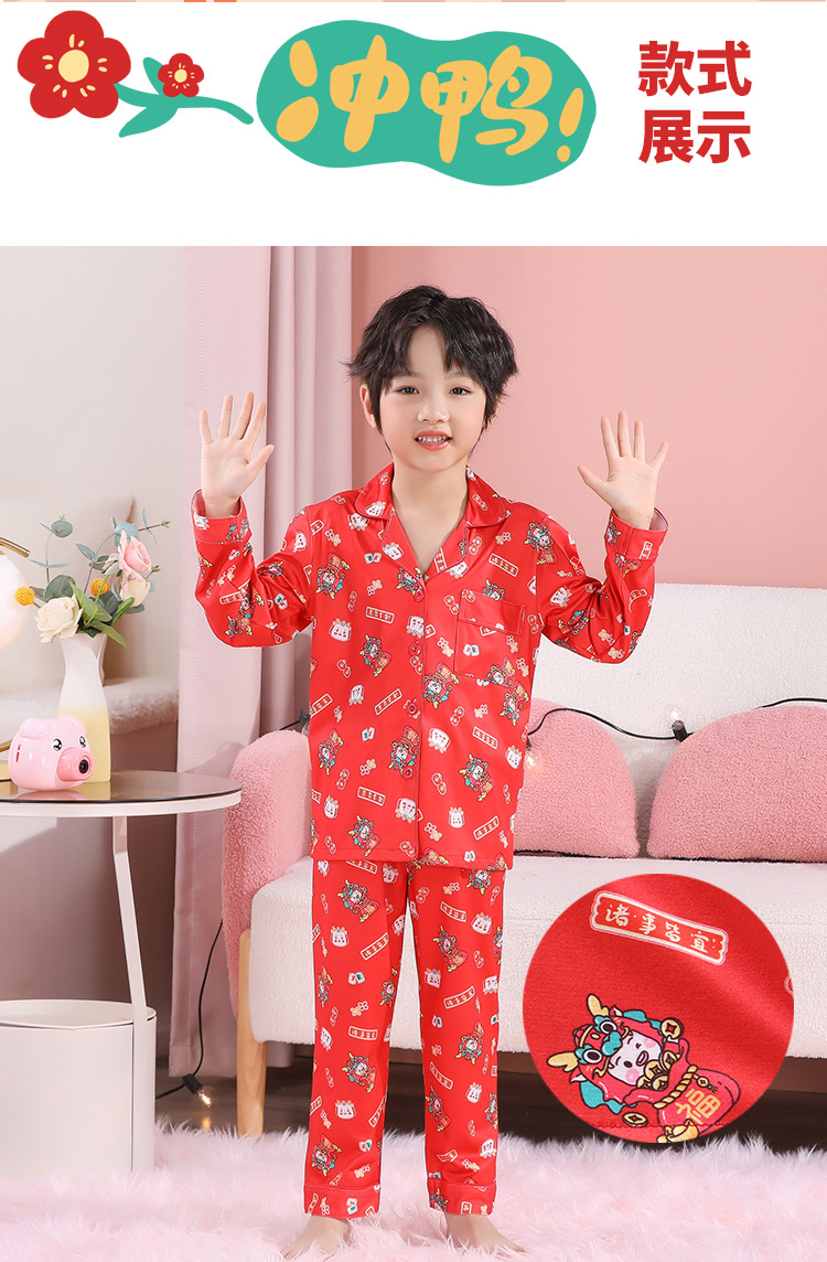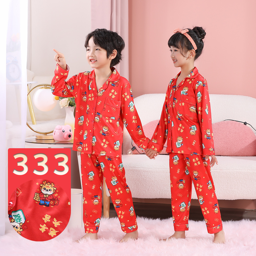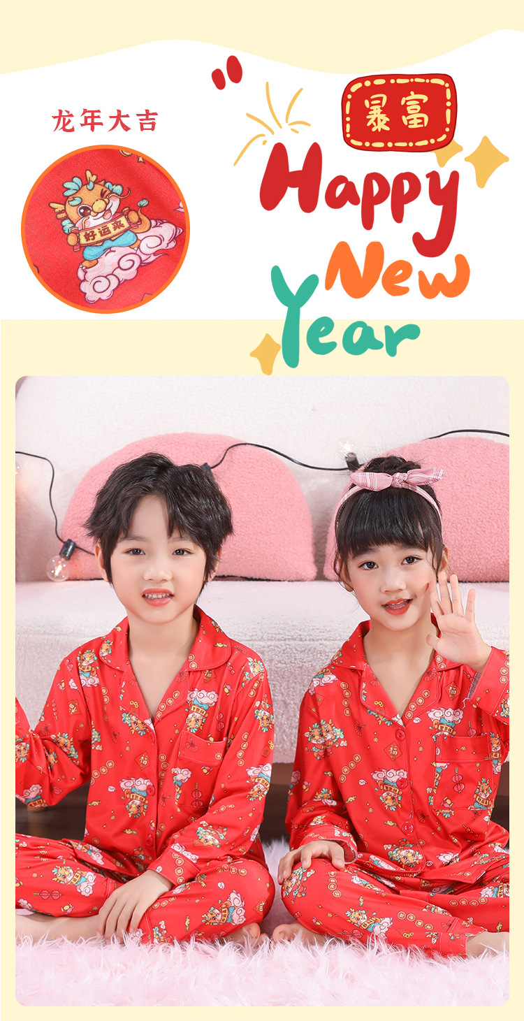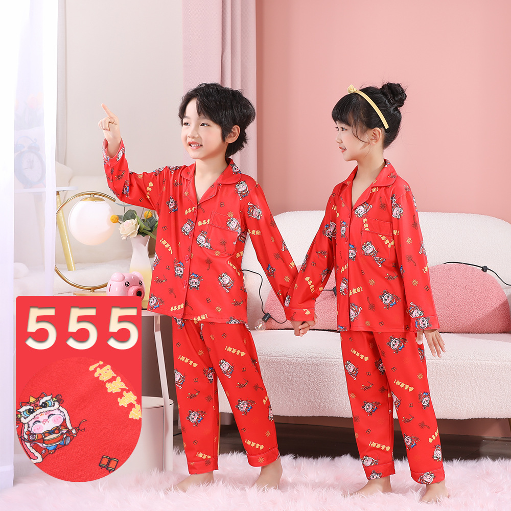 男女童本命年睡衣开衫翻领儿童新年款喜庆大红家居服秋衣秋裤批发