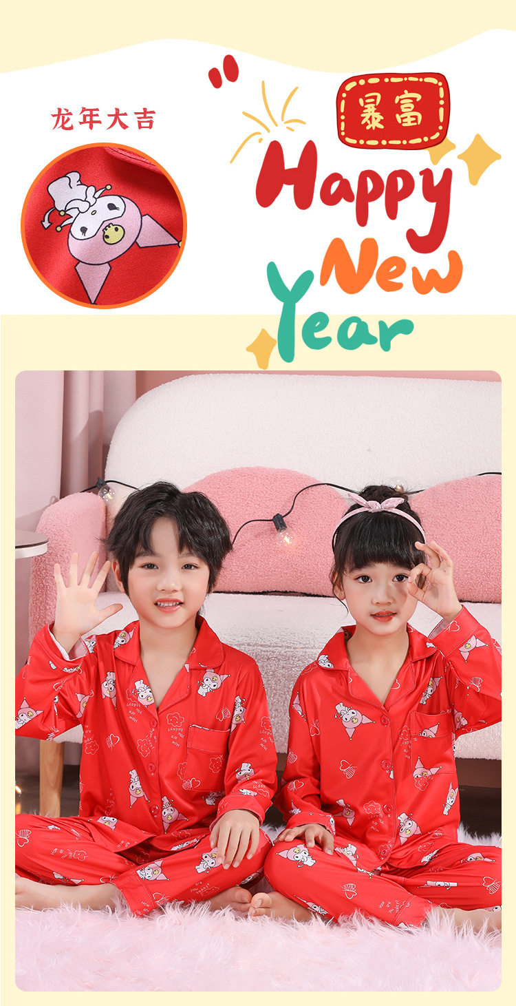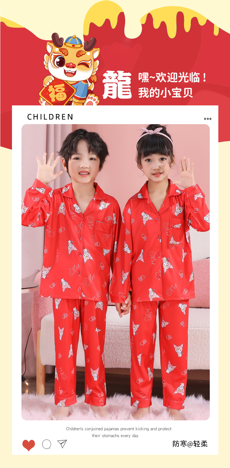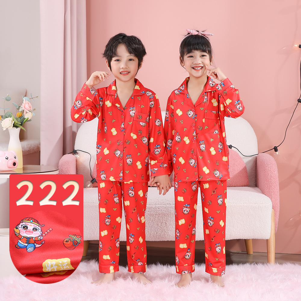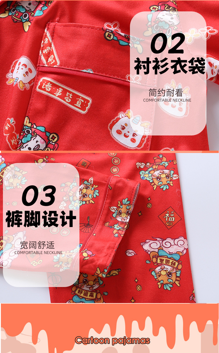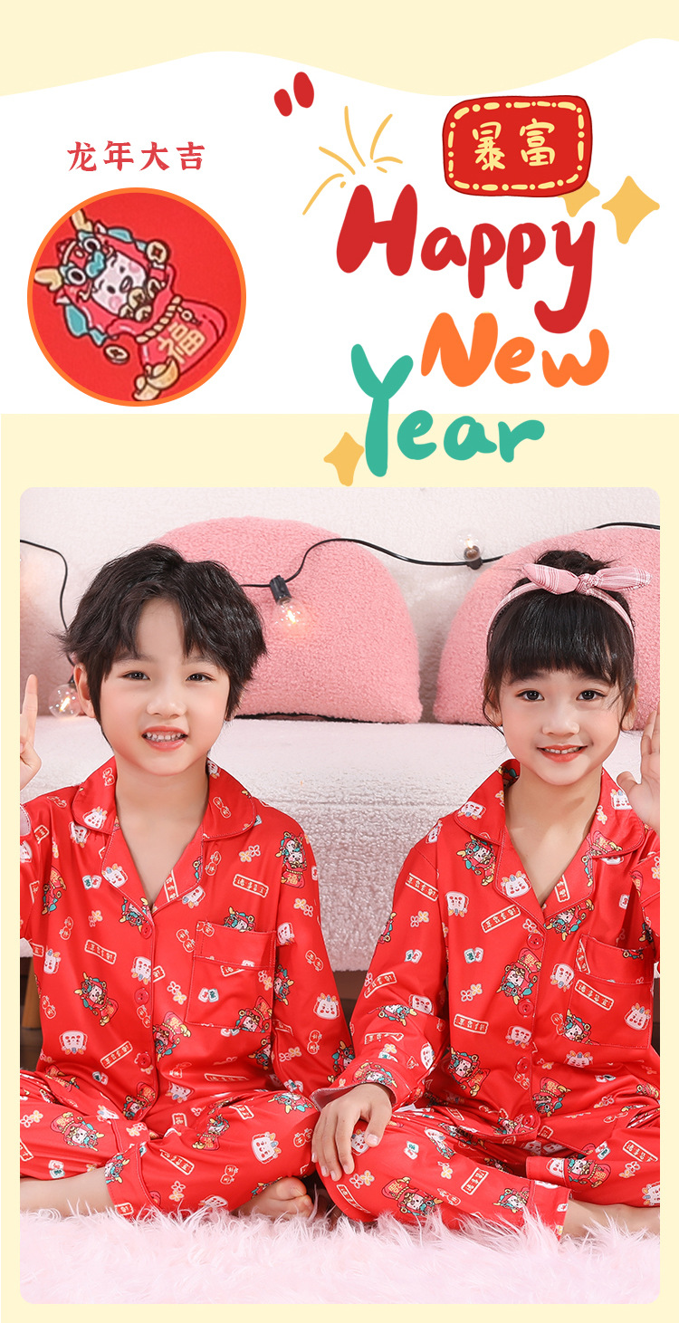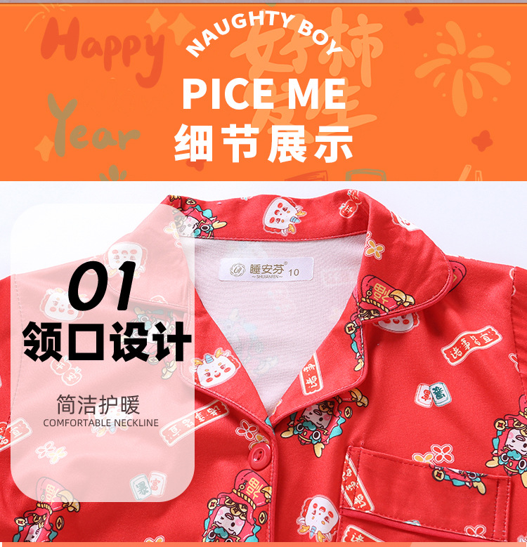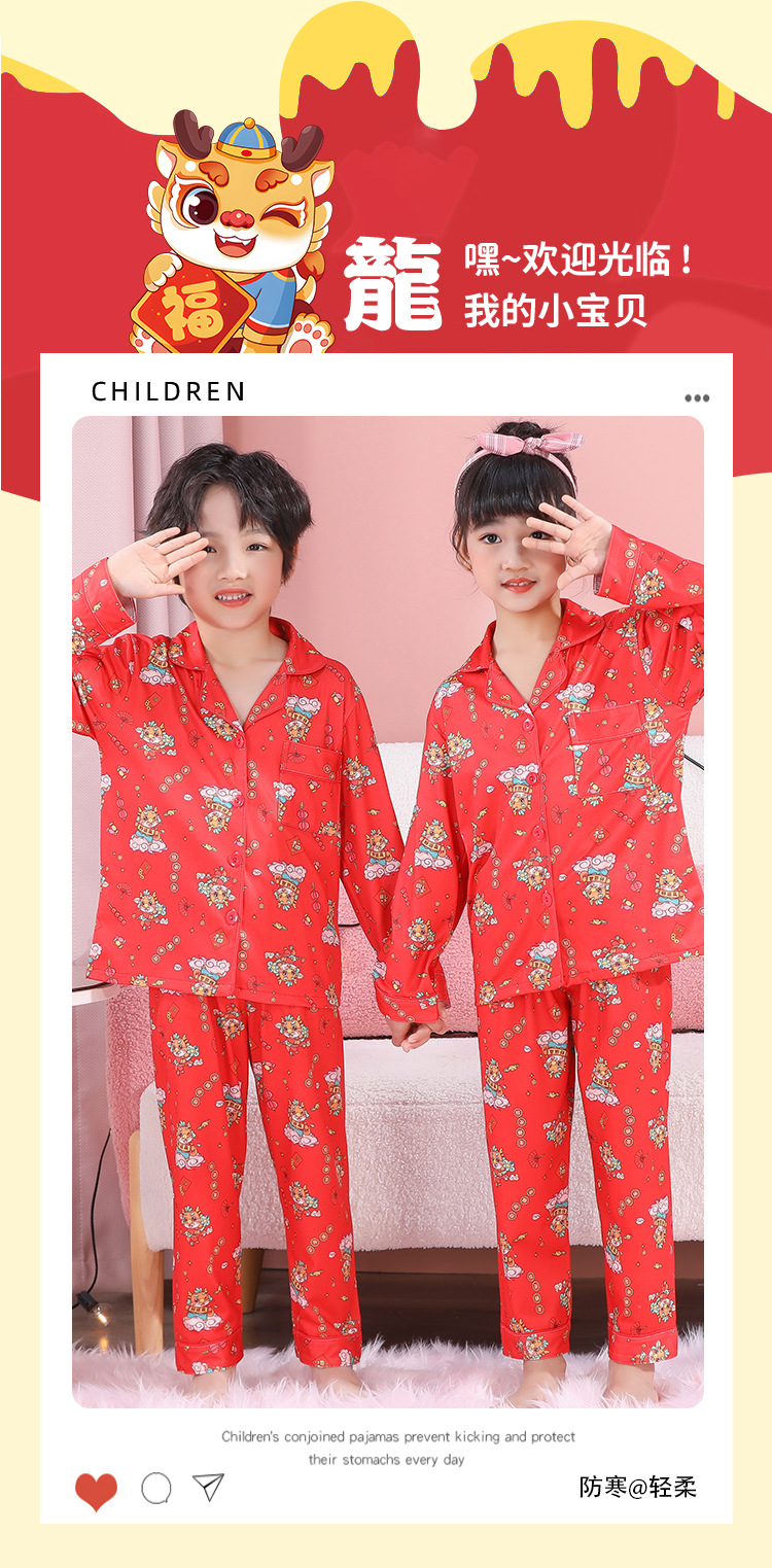 男女童本命年睡衣开衫翻领儿童新年款喜庆大红家居服秋衣秋裤批发