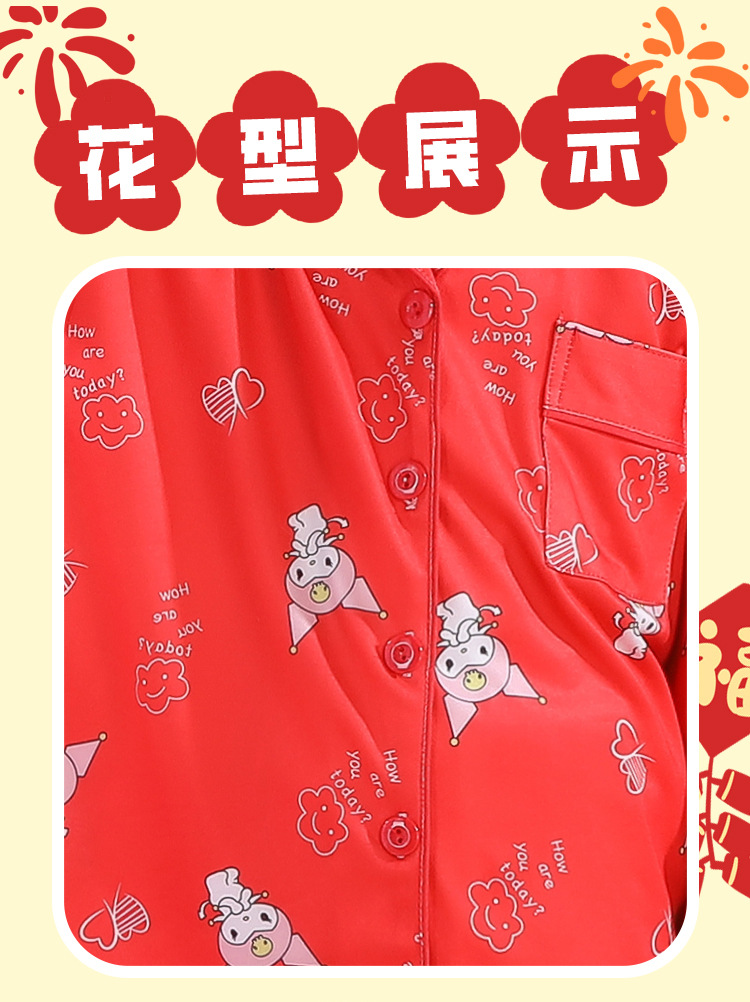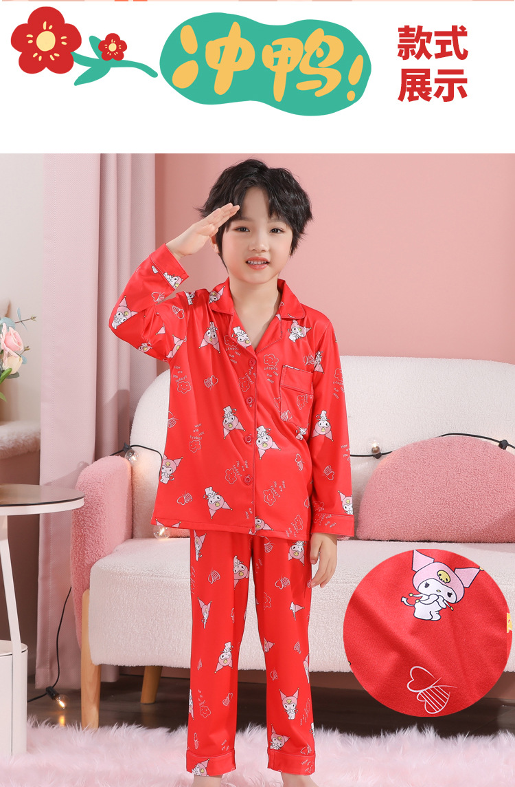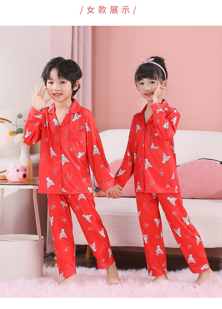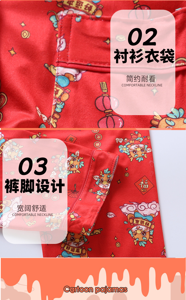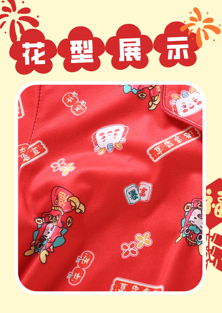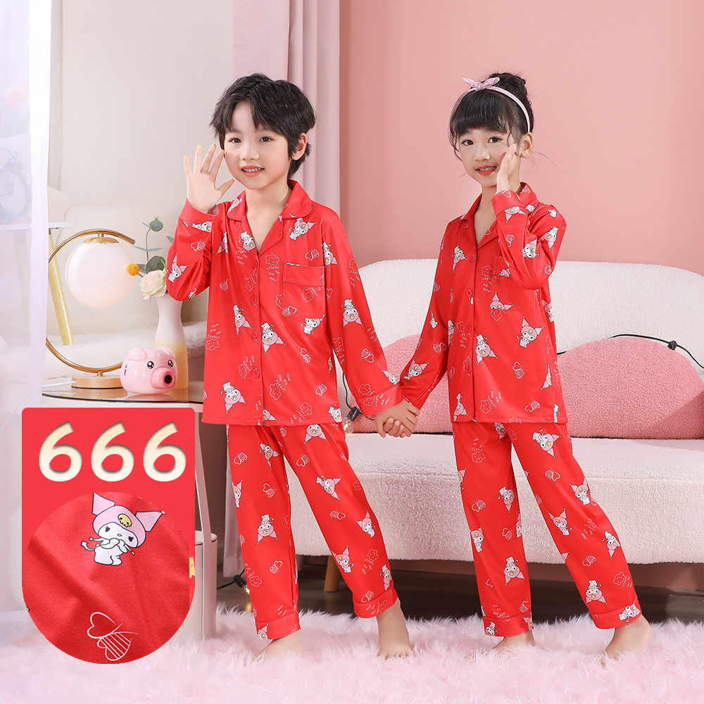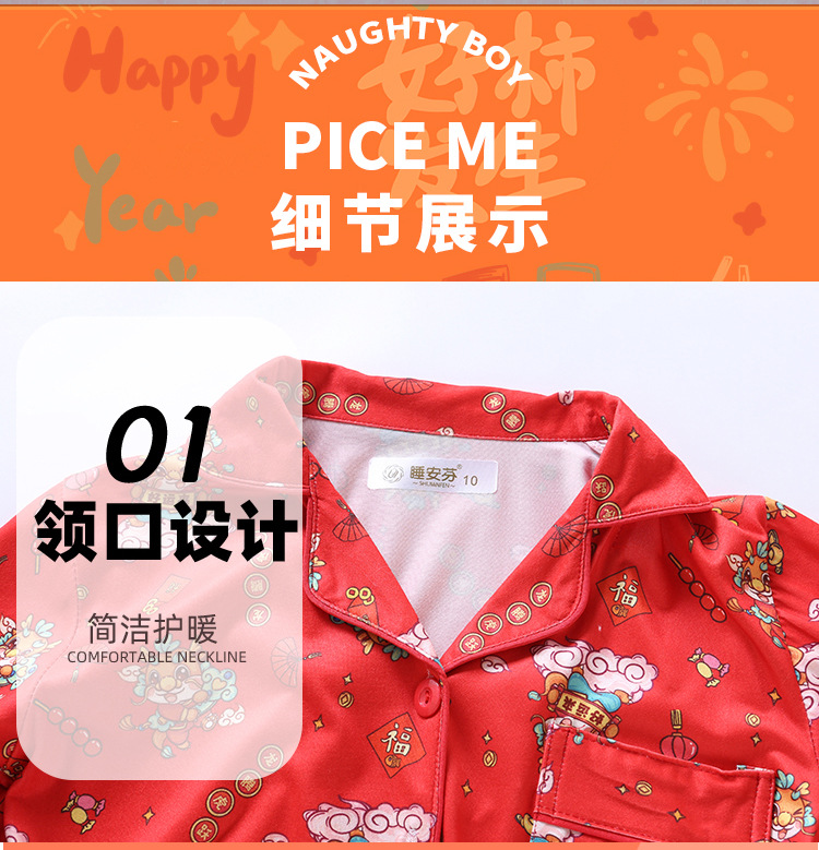 男女童本命年睡衣开衫翻领儿童新年款喜庆大红家居服秋衣秋裤批发