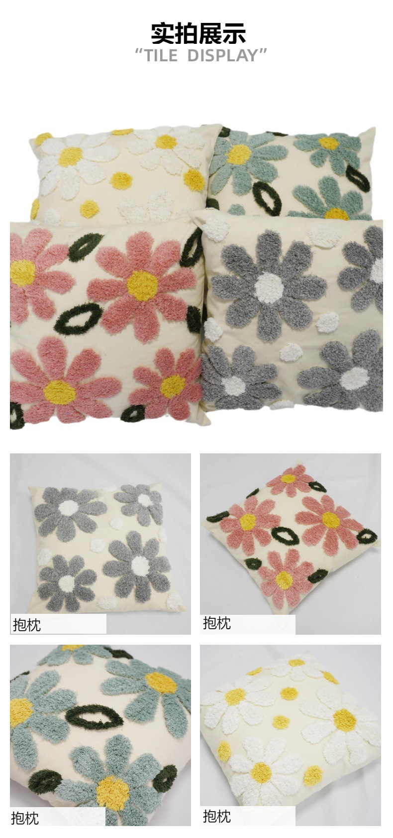 秋冬 新款簇绒抱枕靠垫腰枕花朵刺绣靠枕沙发家居用品 厂家直销