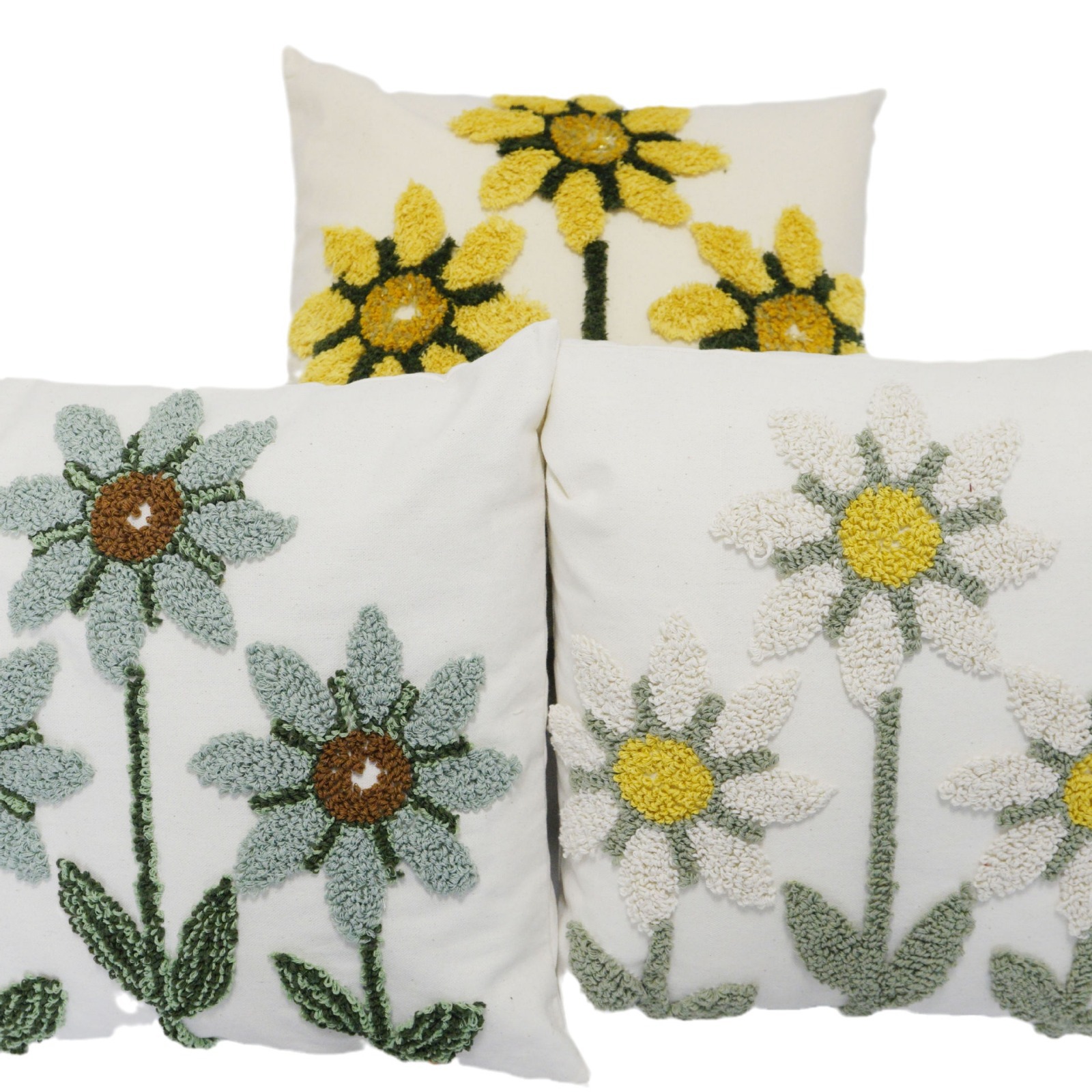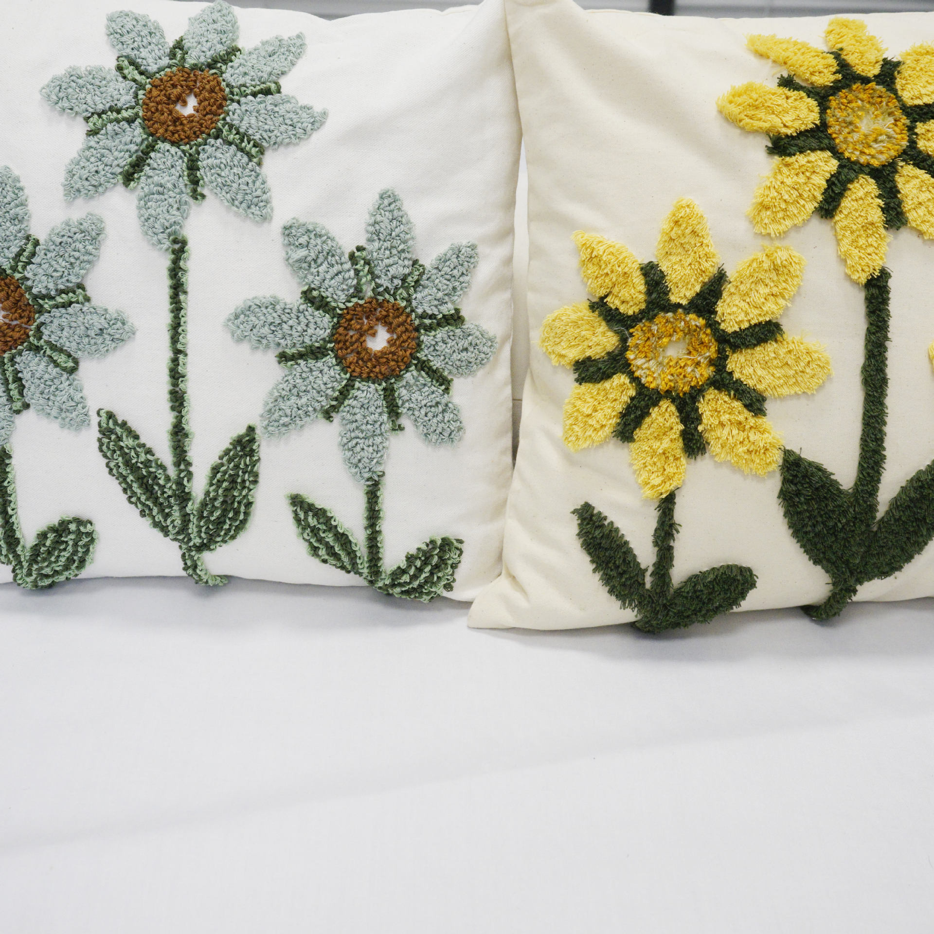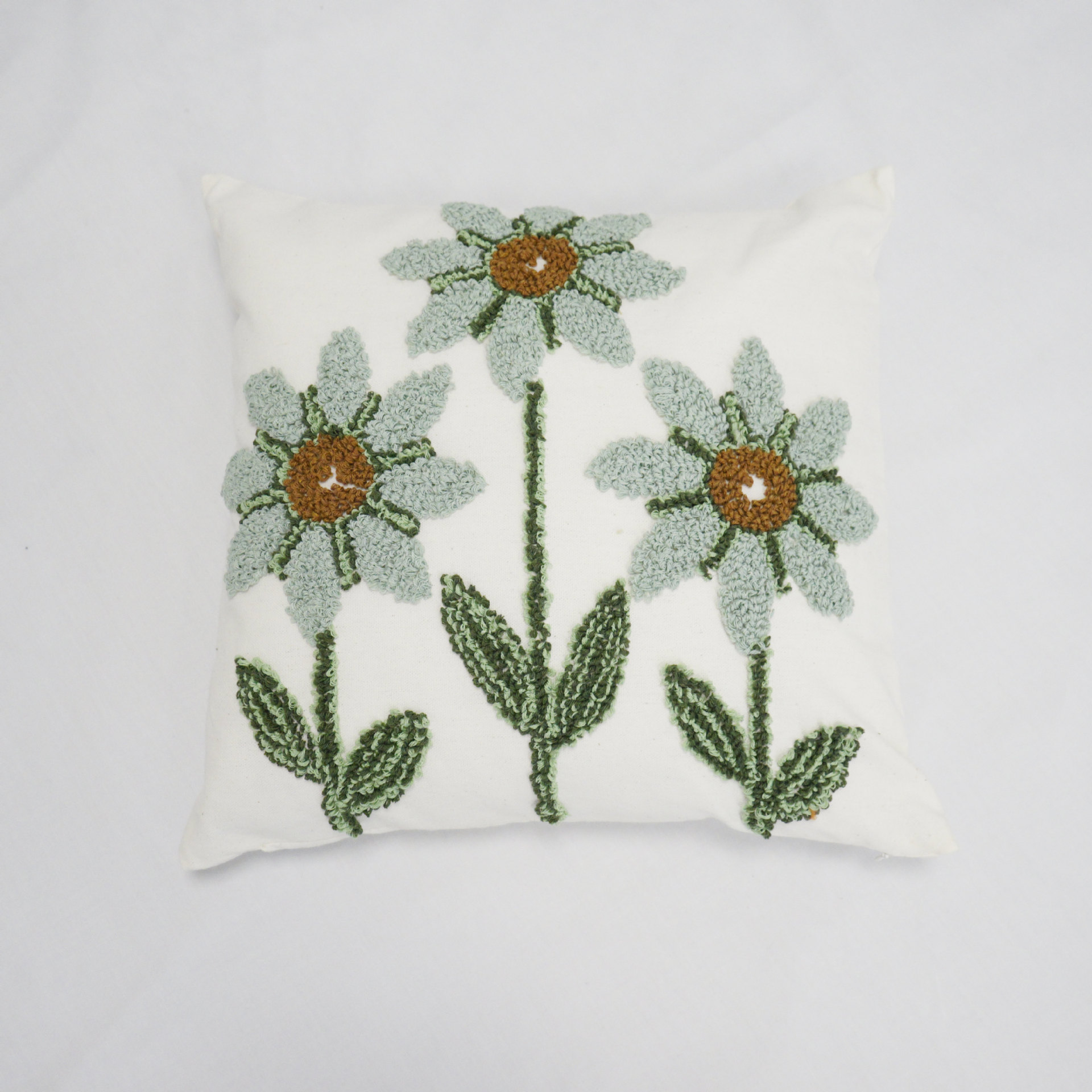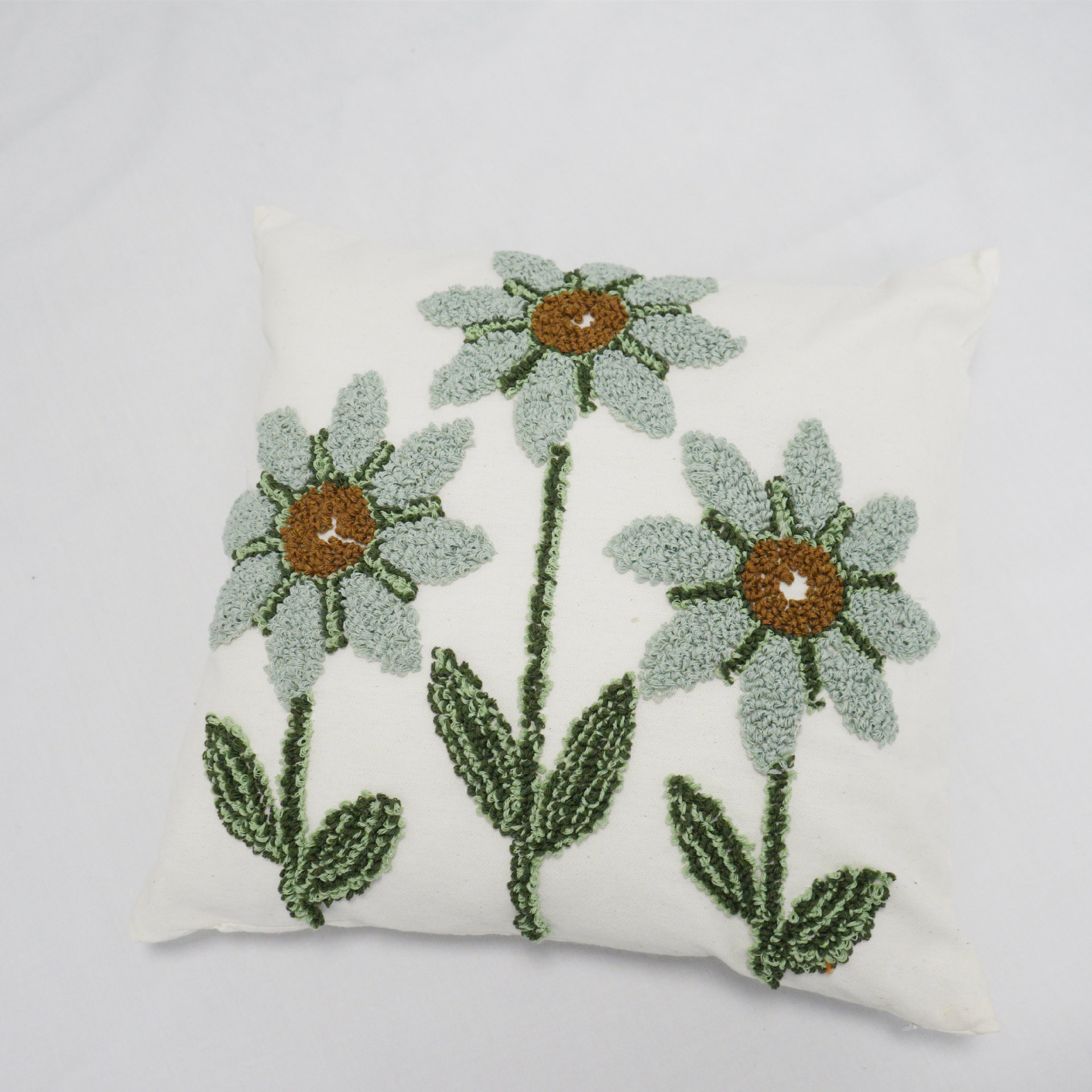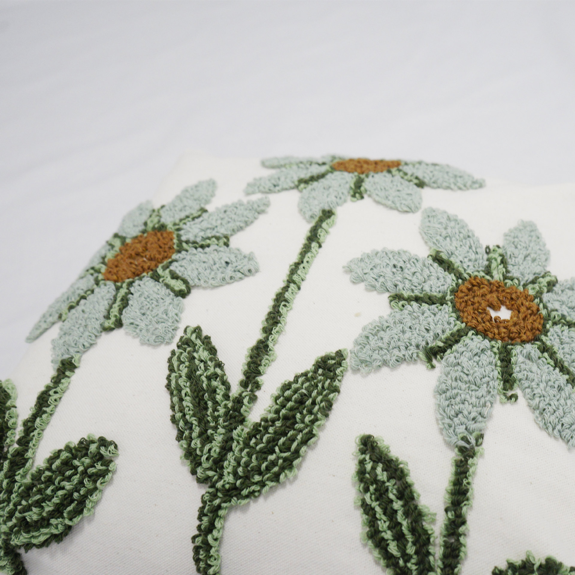 新款波西米亚Ins风绿色花朵 簇绒抱枕套家居靠枕套批发