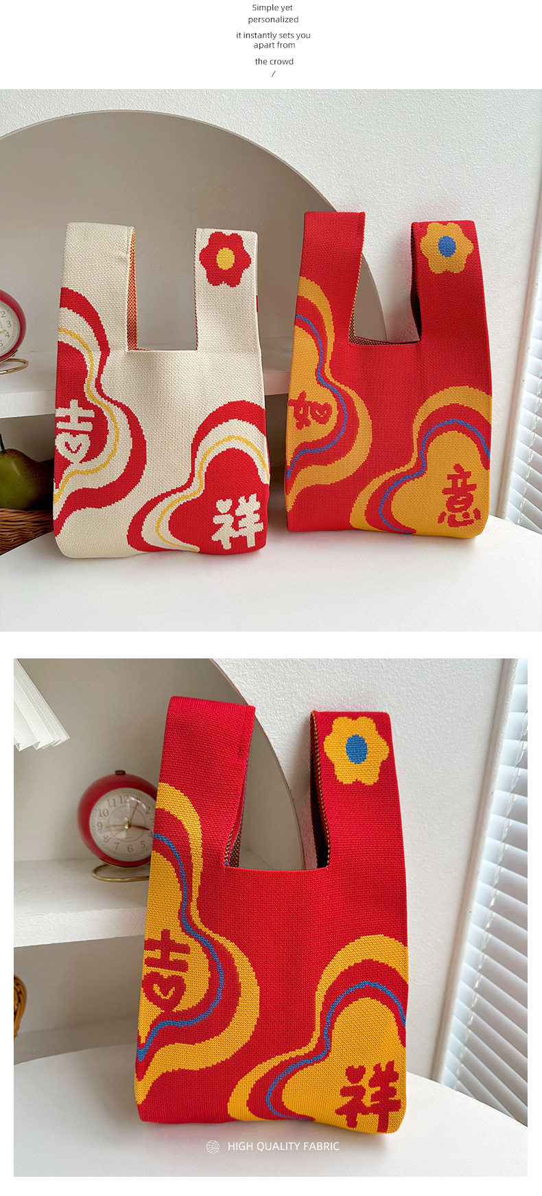 新年喜庆柿柿开心针织包女时尚潮流大容量高级感通勤手提包托特包