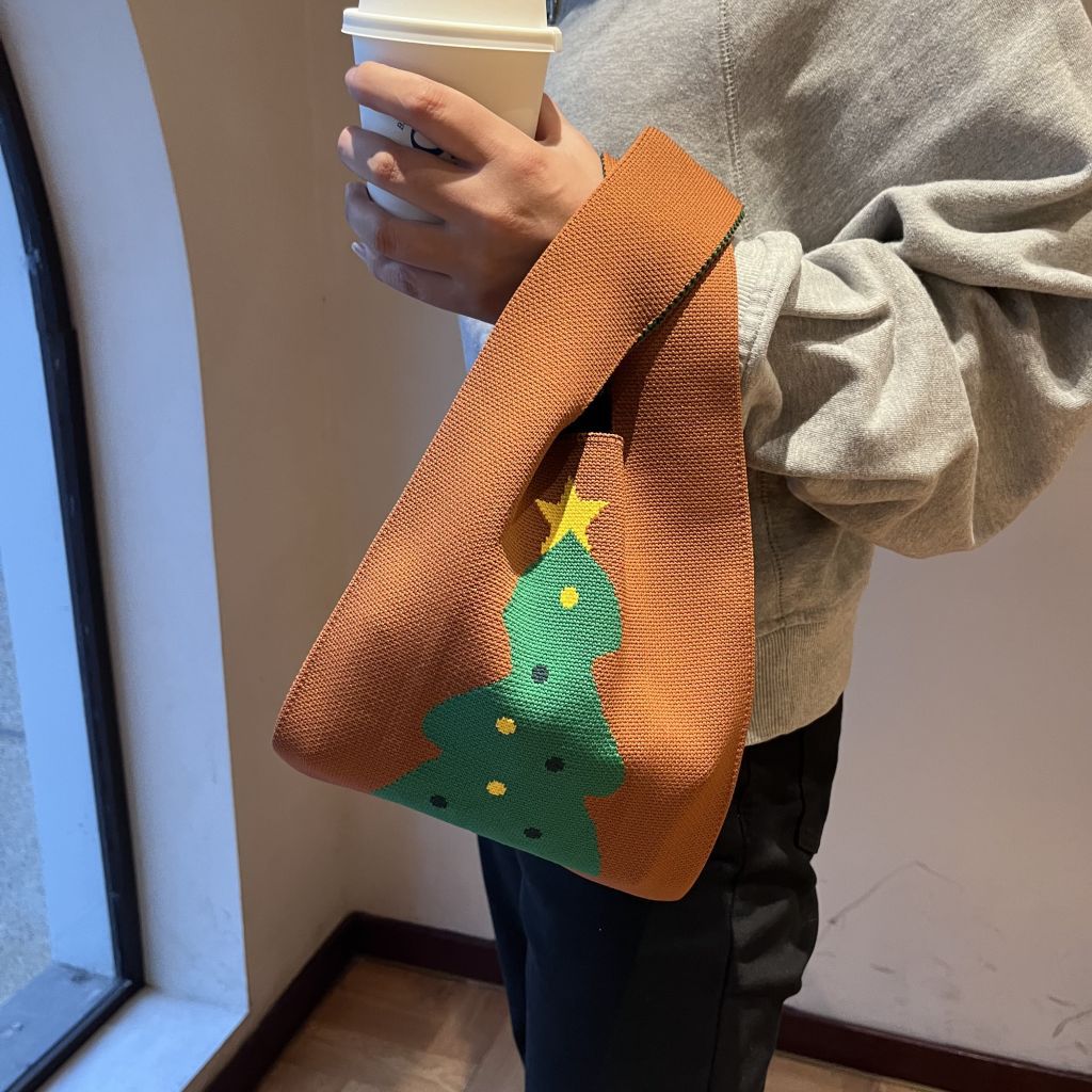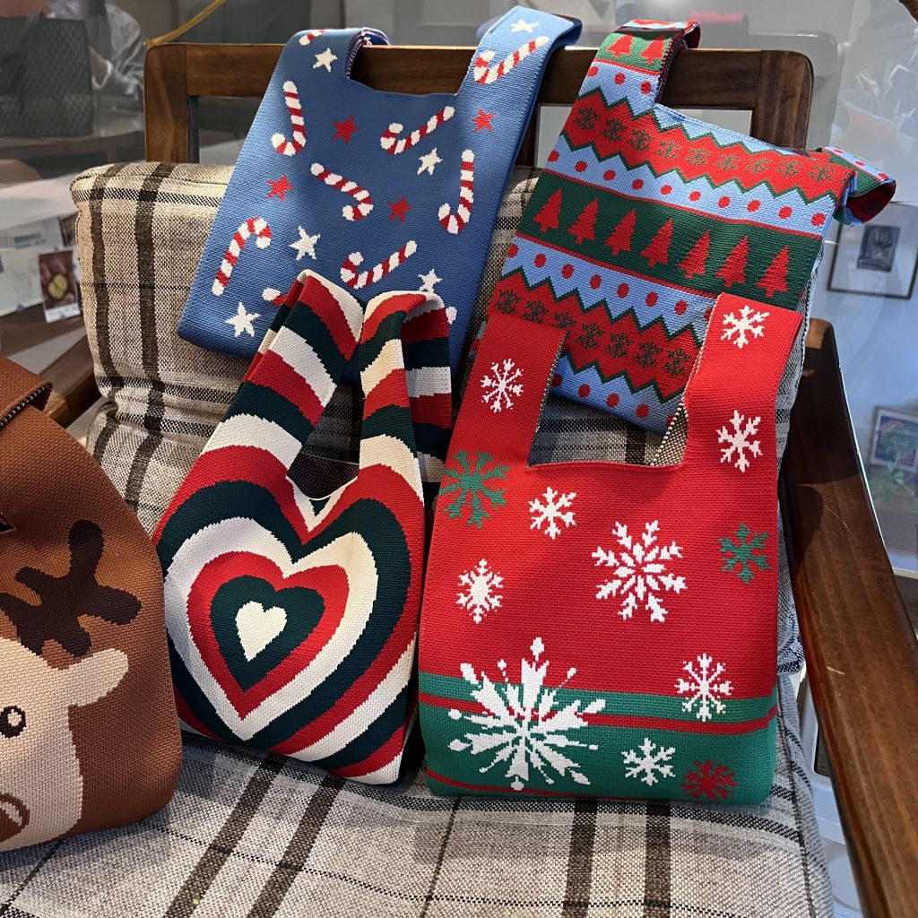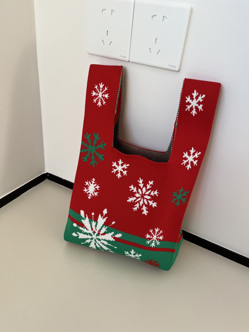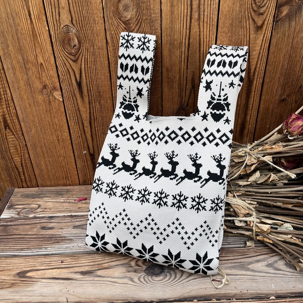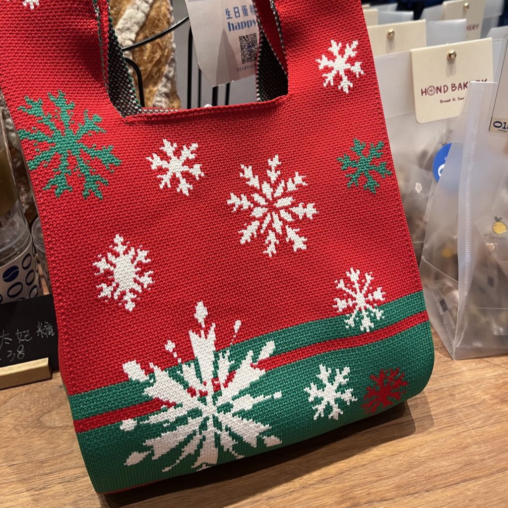 原创设计圣诞节新款针织背心包秋冬手拎包编织手提小众大容量礼袋