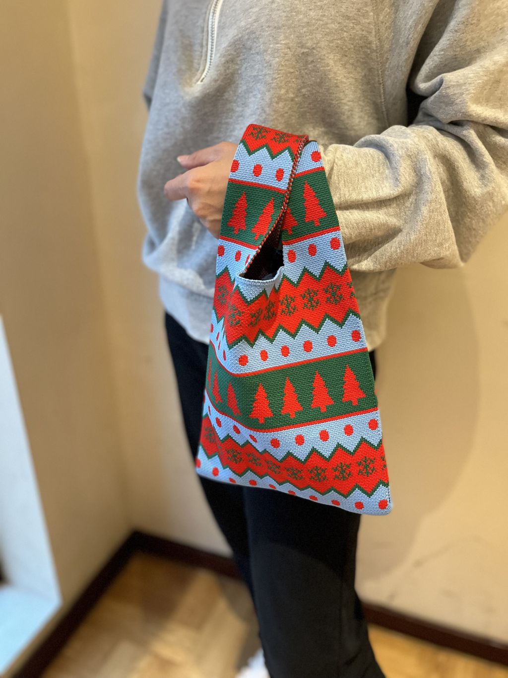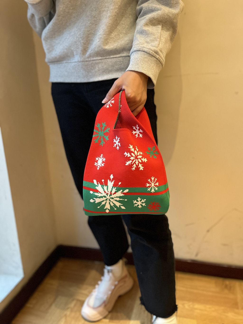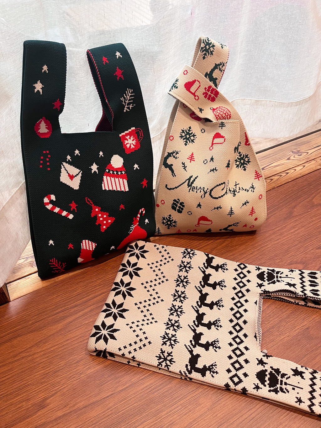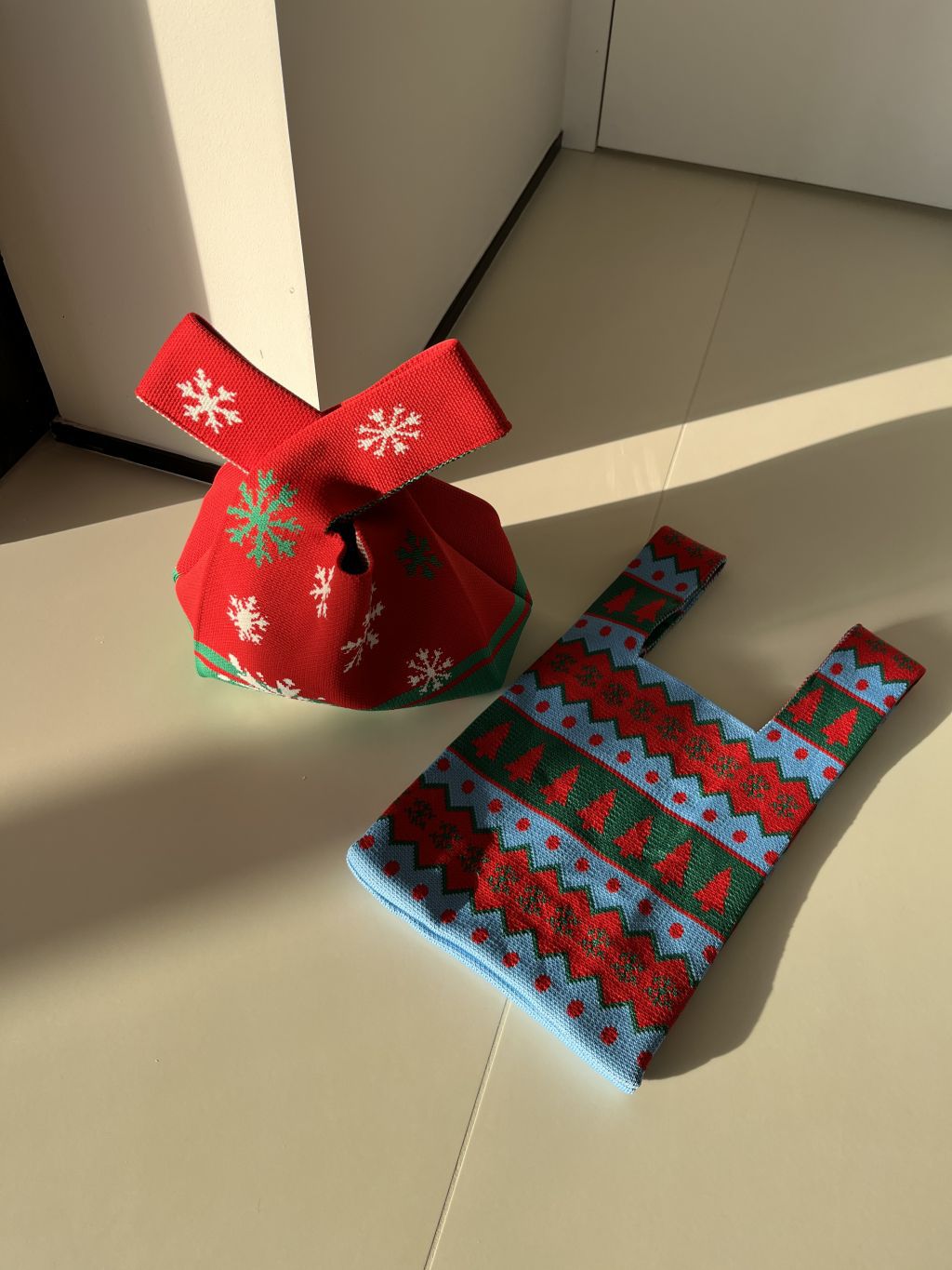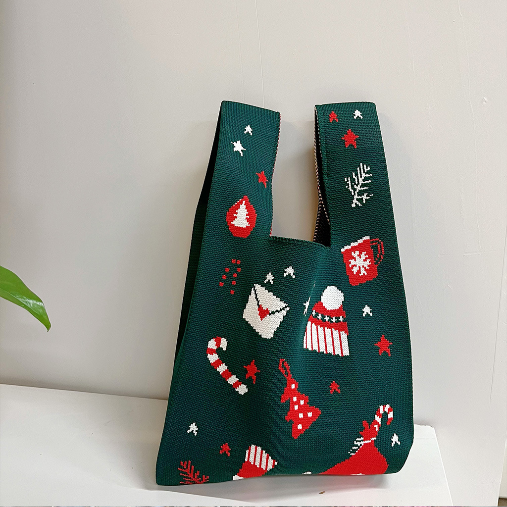 原创设计圣诞节新款针织背心包秋冬手拎包编织手提小众大容量礼袋
