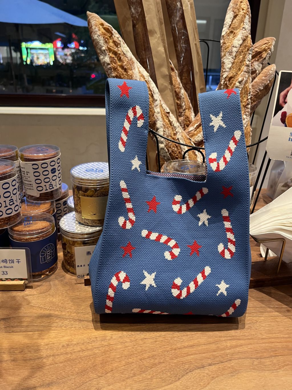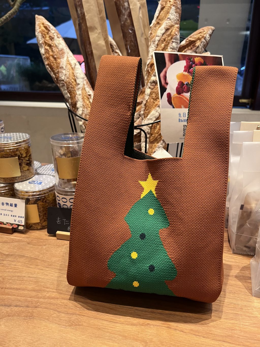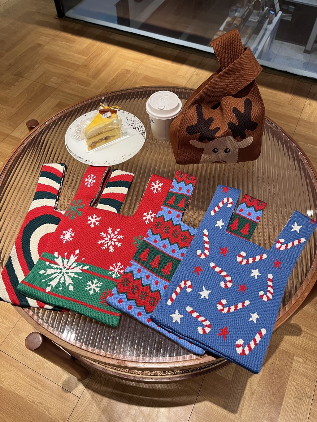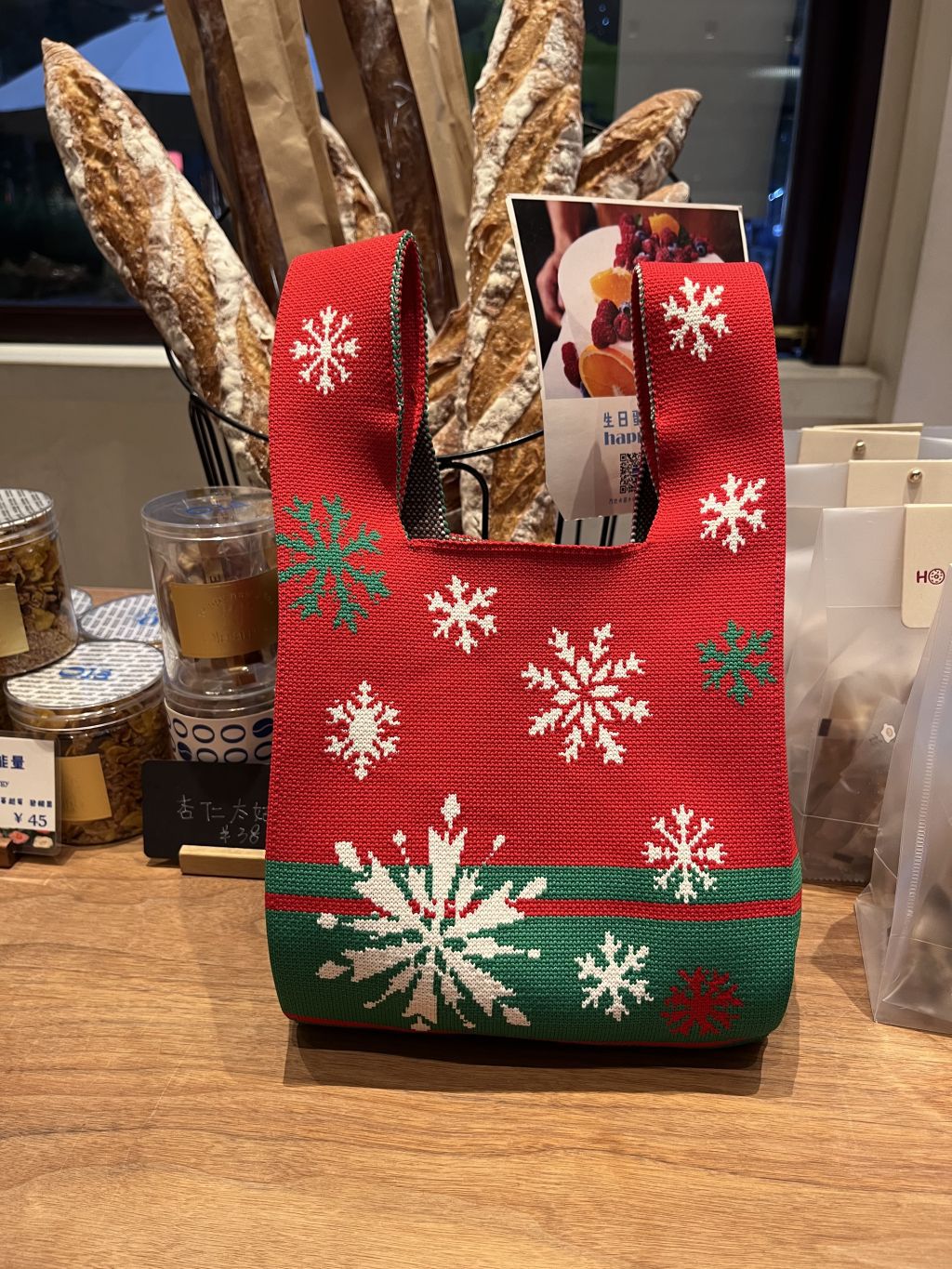 原创设计圣诞节新款针织背心包秋冬手拎包编织手提小众大容量礼袋