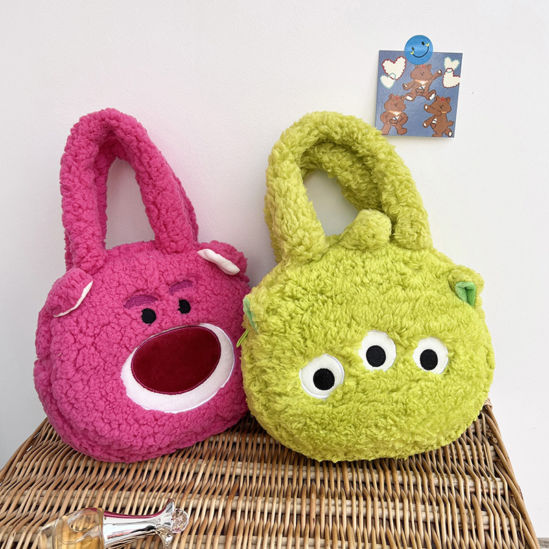 日系松松系列草莓熊女孩新款毛绒玩具公仔手提包甜心羊羔绒手挎包