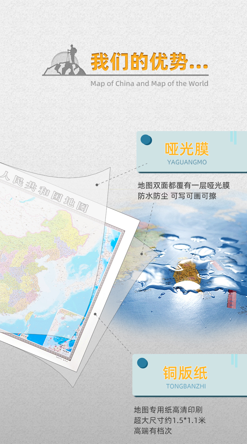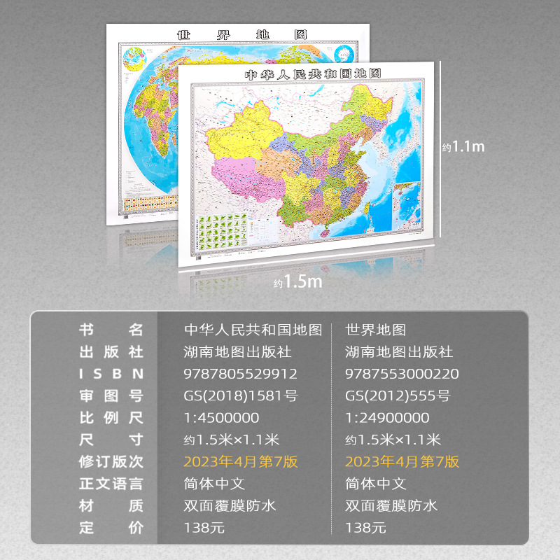 地图批发 中国地图和世界地图1.5米高清版大图湖南地图出版社