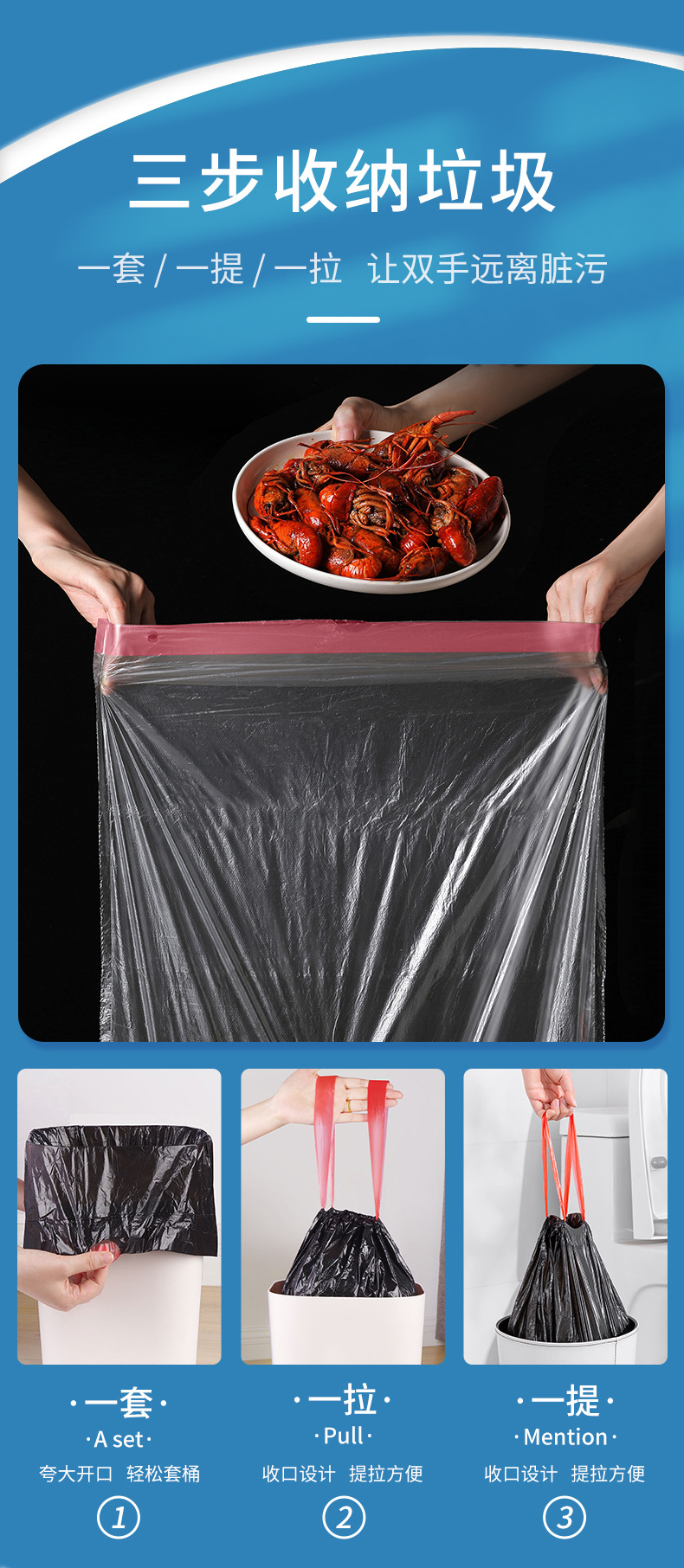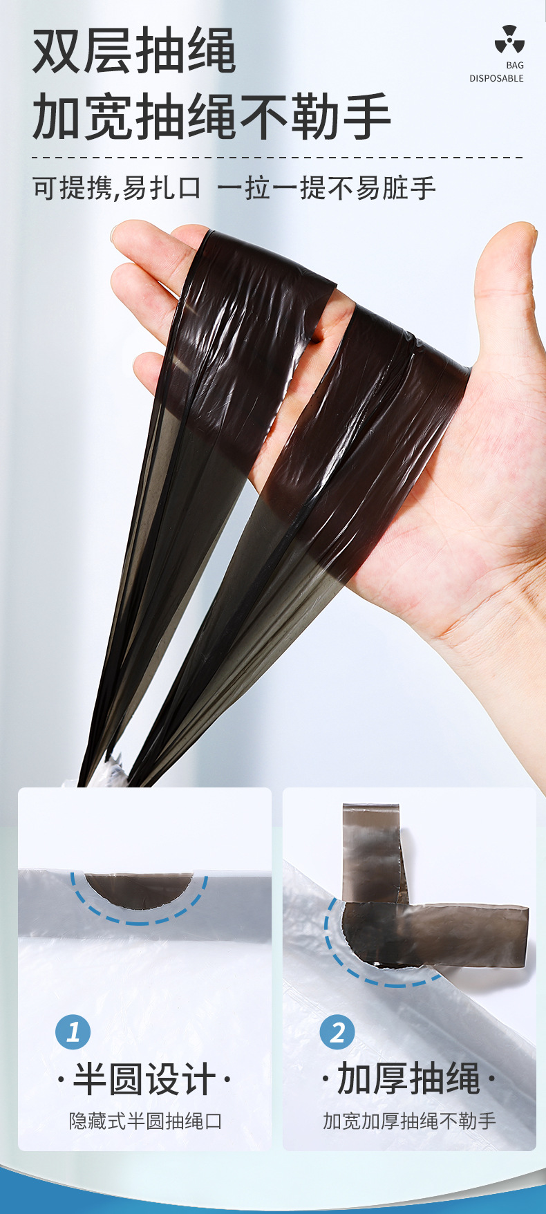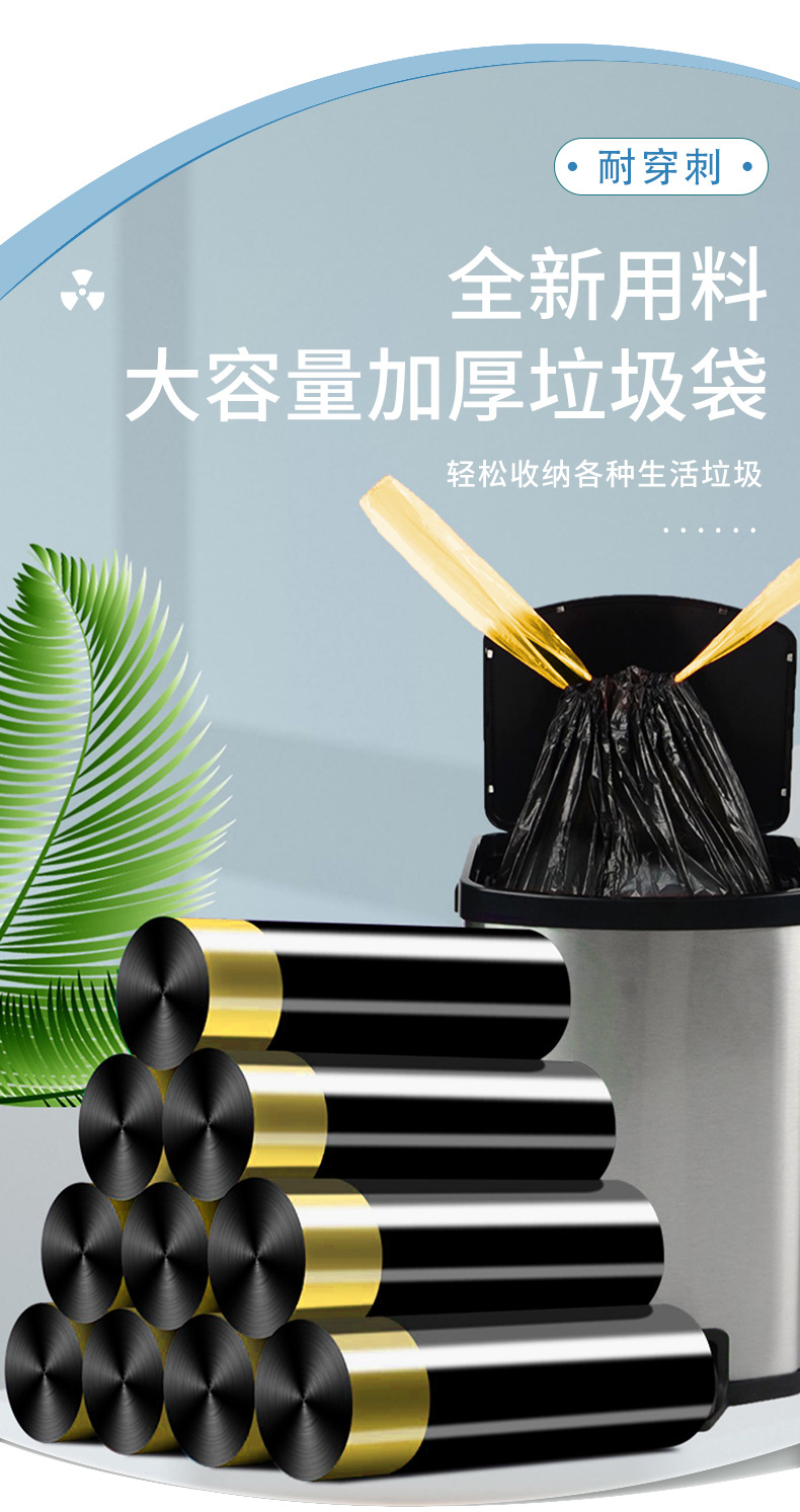 大卷加大加厚抽绳式垃圾袋家用一次性手提大号厨房塑料袋一件代发