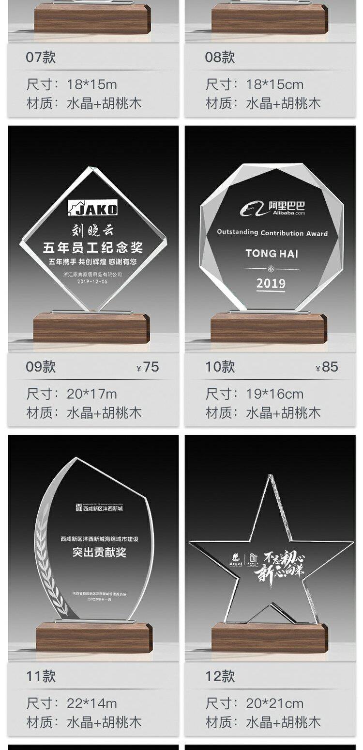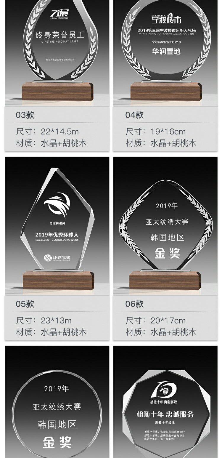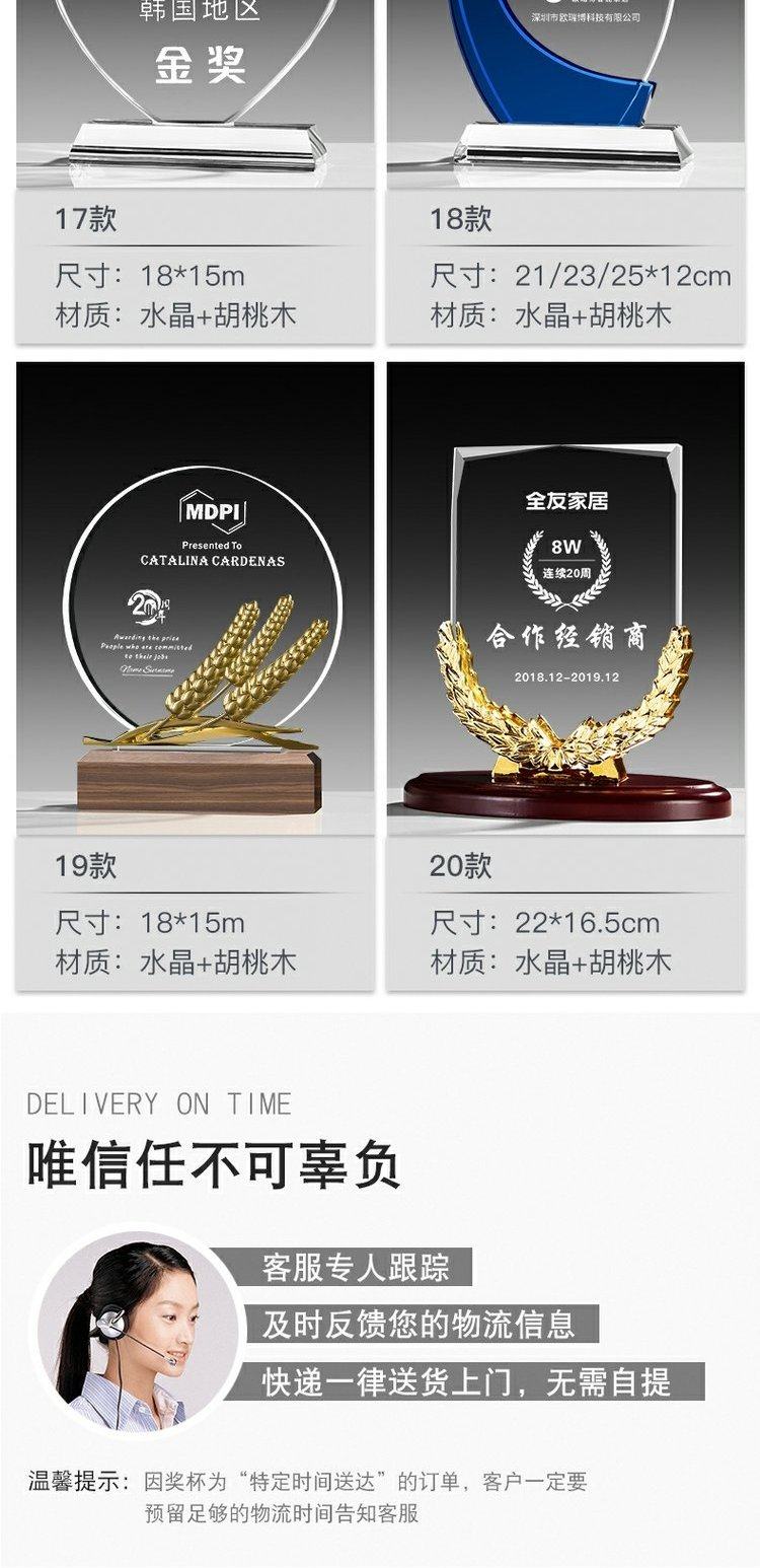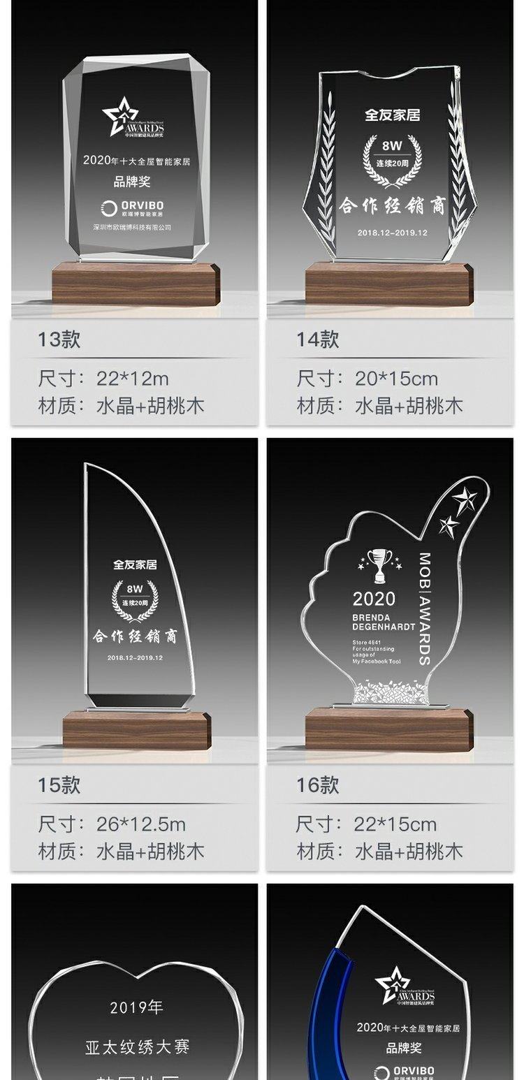 水晶奖杯定制荣誉奖牌定做创意授权牌企业优秀员工年会颁奖纪念品